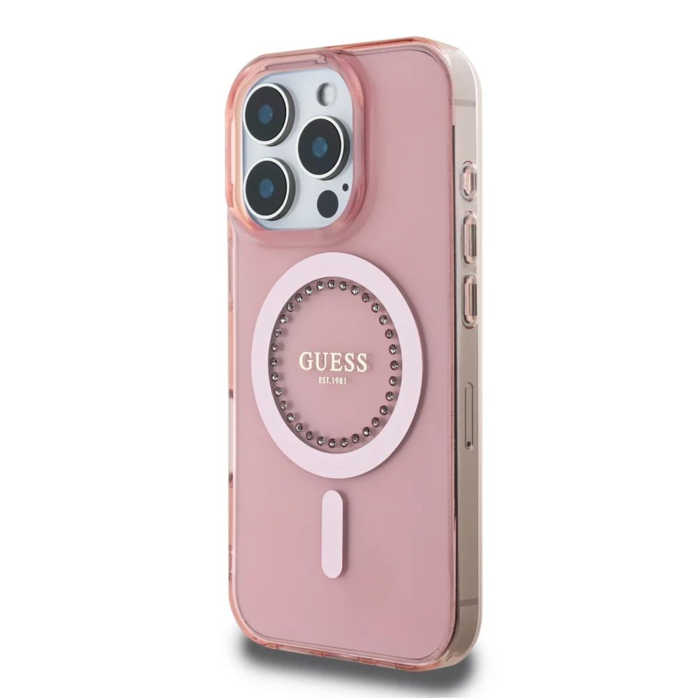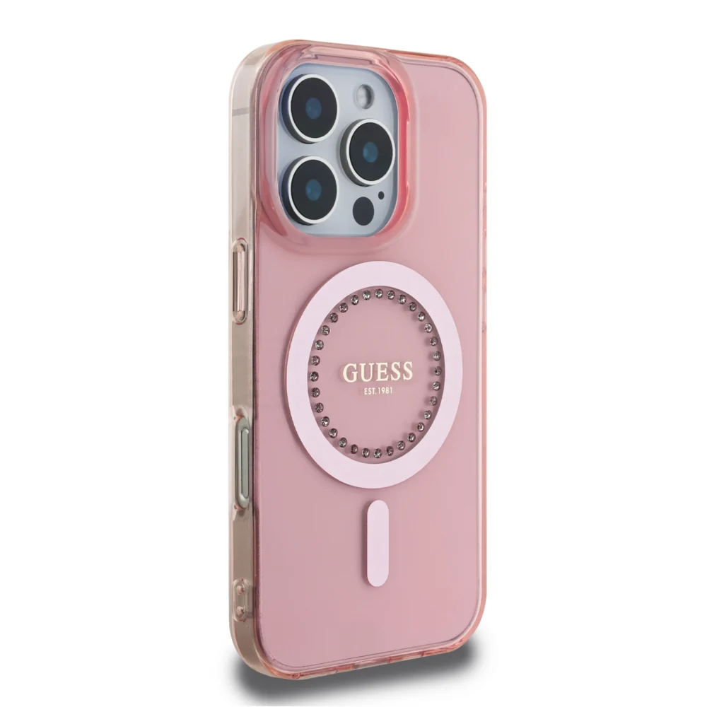 Guess Magsafe “Rhinestones” Hard Case Θήκη προστασίας από σκληρό πλαστικό – iPhone 16 Pro (Ροζ – GUHMP16LPFTDTEP)