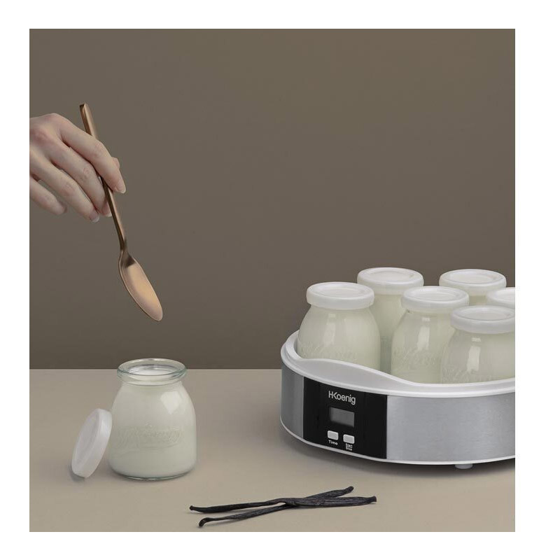 Ο παρασκευαστής γιαουρτιού, από την εταιρία H.Koenig, είναι ιδανική επιλογή για να δημιουργήσετε το δικό σας σπιτικό γιαούρτι. Χρειάζεστε μόνο τρία πράγματα: γάλα, μαγιά γιαουρτιού και τον παρασκευαστή. Είναι εξαιρετικά εύκολος στη χρήση, χωρίς να απαιτεί έλεγχο ή παρακολούθηση. Το μόνο που έχετε να κάνετε είναι να τοποθετήσετε τα συστατικά στην συσκευή.