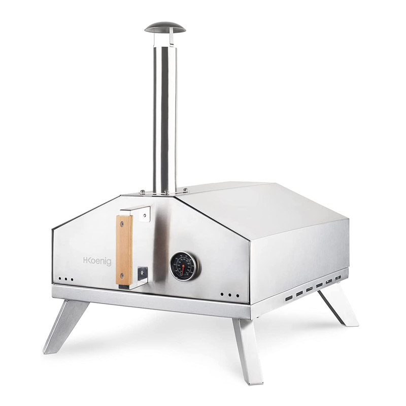 Ο φούρνος πίτσας εξωτερικού χώρου, από την εταιρία H.Koenig, λειτουργεί με αέριο προπάνιο ή βουτάνιο και αναπαράγει τις παραδοσιακές συνθήκες ψησίματος της ιταλικής πίτσας. Σχεδιασμένος από ανοξείδωτο ατσάλι με αφαιρούμενη πόρτα, μπορεί να φτάσει σε θερμοκρασία έως και 450 °C σε λιγότερο από 10 λεπτά. Μπορείτε να ελέγξετε τη θερμοκρασία χάρη στο ενσωματωμένο θερμόμετρο του καθώς και στο κουμπί ελέγχου που βρίσκεται στο πίσω μέρος του.