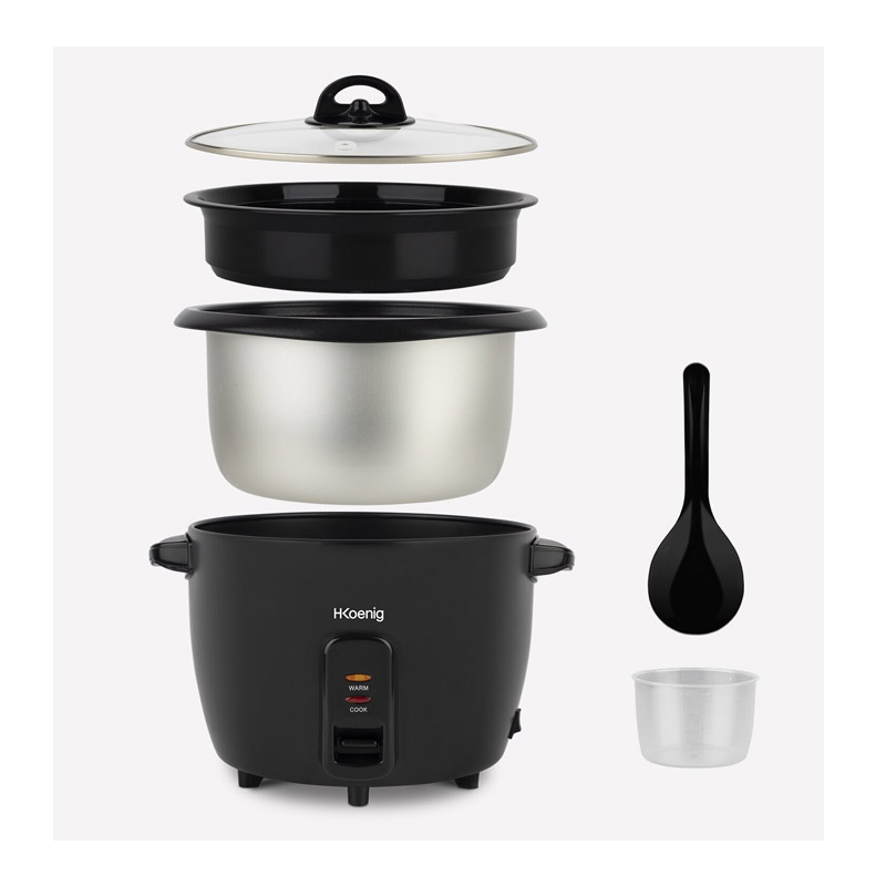 Με τον βραστήρα ρυζιού, από την εταιρία H.Koenig, μπορείτε να μαγειρέψετε έως και 10 μερίδες ρύζι για όλη την οικογένεια. Κατάλληλος για όλους τους τύπους ρυζιού, μπορείτε να διαφοροποιήσετε τις συνταγές σας χρησιμοποιώντας το ενσωματωμένο καλάθι ατμού για να μαγειρέψετε λαχανικά, ψάρια και πουλερικά.