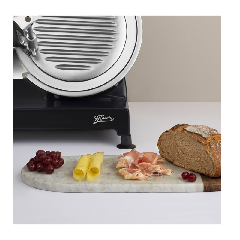 Η ηλεκτρική μηχανή κοπής, από την εταιρία H.Koenig, έχει σχεδιαστεί για να κόβει κάθε είδους τρόφιμα όπως ψωμί, ζαμπόν, τυρί και πολλά άλλα με τον πιο βολικό και γρήγορο τρόπο. Εξοπλισμένη με ιταλική λεπίδα υψηλής ποιότητας, μπορείτε να κόψετε όλα τα φαγητά σας στην τελειότητα χάρη στη διάμετρο 250 mm. Ισχυρή, γρήγορη και αθόρυβη χάρη στον ασύγχρονο κινητήρα 240 W με 282 rpm.