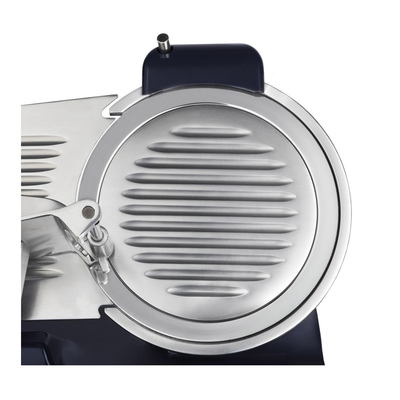 Η μηχανή κοπής, έχει ενσωματωμένο ακονιστήρι λεπίδας για βέλτιστο αποτέλεσμα κοπής και φαρδιά πλάκα που διευκολύνει την τοποθέτηση ενός μεγάλου ζαμπόν. Τα 4 αντιολισθητικά πόδια, εξαλείφουν τον κίνδυνο πτώσης ή αστάθειας.