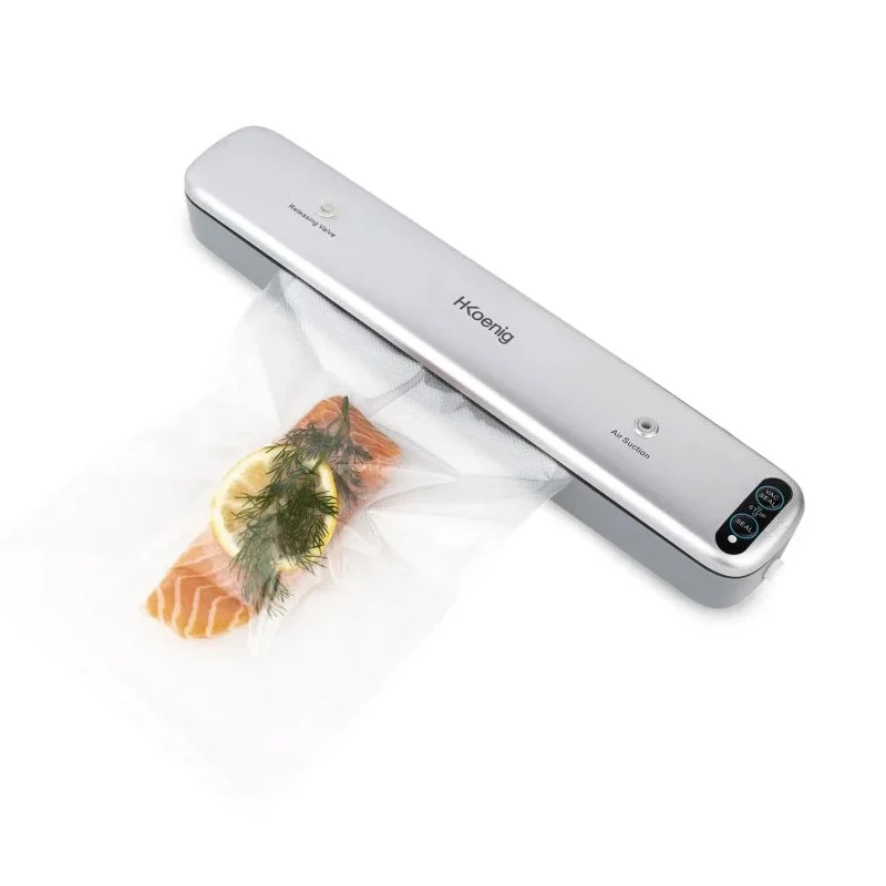 Με τη συσκευή σφραγίσματος τροφίμων, από την εταιρία H.Koenig, μπορείτε να διατηρήσετε τις τροφές για μεγαλύτερο χρονικό διάστημα, αυξάνοντας το χρόνο ζωής των προϊόντων στο ψυγείο στη συντήρηση ή στην κατάψυξη. Η συσκευή σφραγίσματος σας προσφέρει τη δυνατότητα να συντηρήσετε προϊόντα κρέατος, ψαριών, πουλερικών, λαχανικών, τυριών, ζυμαρικών, αποξηραμένων φρούτων, μπαχαρικών, ειδών αρτοποιίας κ.α. σε κενό αέρος.