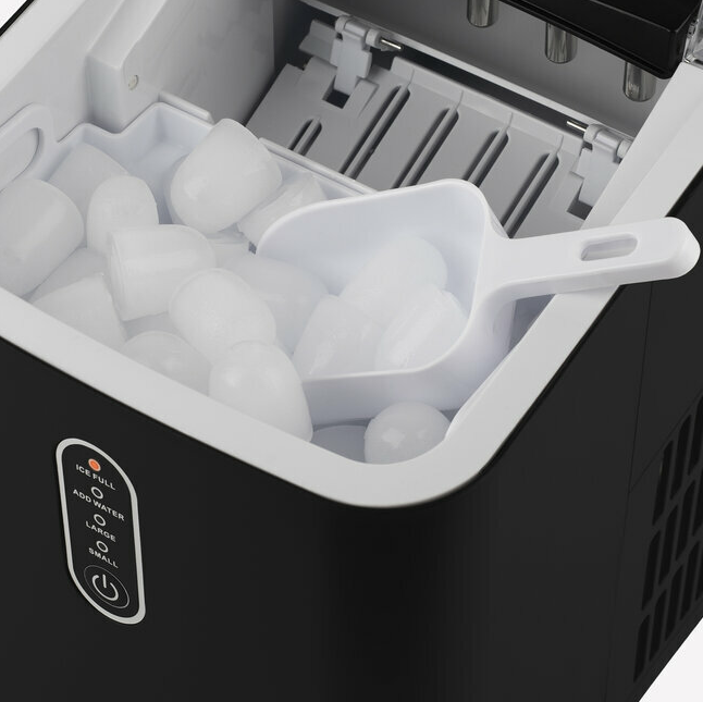 Η παραγωγή πάγου γίνεται αυτόματα και είναι εύκολο να την ελέγξετε χάρη στην ενσωματωμένη LCD οθόνη και το διαφανές καπάκι.Πρακτική και ευέλικτη, σας επιτρέπει να επιλέξετε ανάμεσα σε δύο μεγέθη παγάκια ανάλογα με τις ανάγκες σας. Μπορείτε να τα σερβίρετε εύκολα με το φτυαράκι πάγου που περιλαμβάνεται ή να τα μεταφέρετε με τον αφαιρούμενο δίσκο πάγου.
