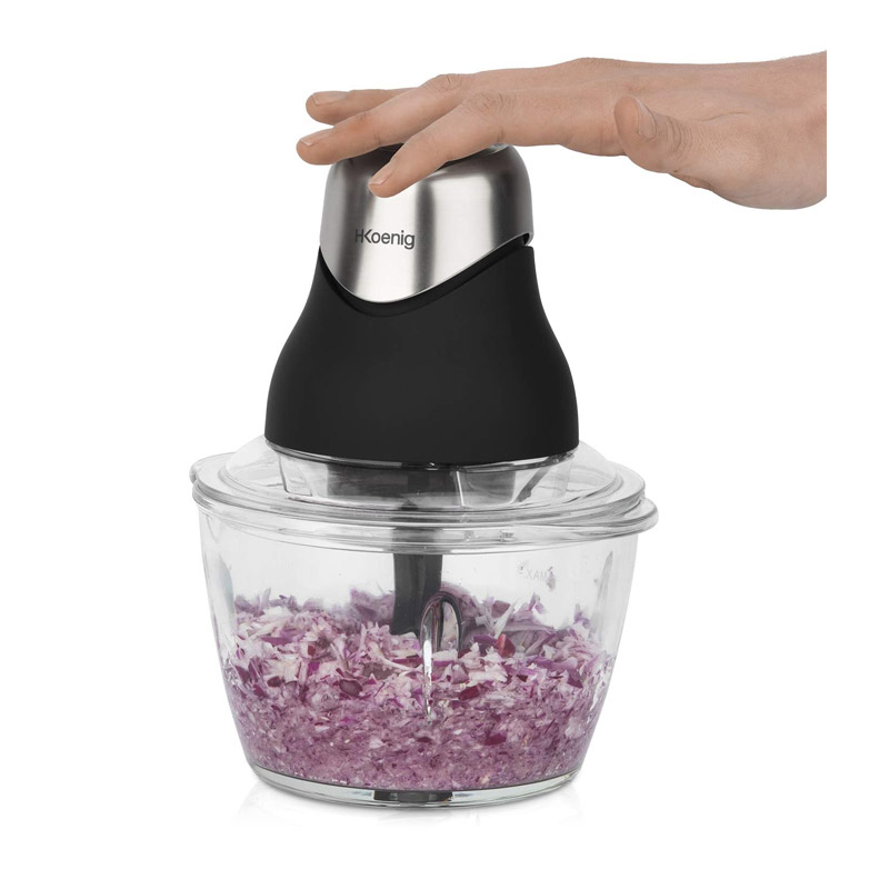Το ηλεκτρικό μπλέντερ – πολυκόφτης, από την εταιρία H.Koenig, διαθέτει ισχύ 320 W και λεπίδες από ανοξείδωτο ατσάλι. Είναι εξοπλισμένο με 2 γυάλινα, μπολ, το ένα βαθμονομημένο χωρητικότητας 1 Lt και το άλλο με καπάκι για να αποθηκεύετε τα τεμαχισμένα τρόφιμα στο ψυγείο.