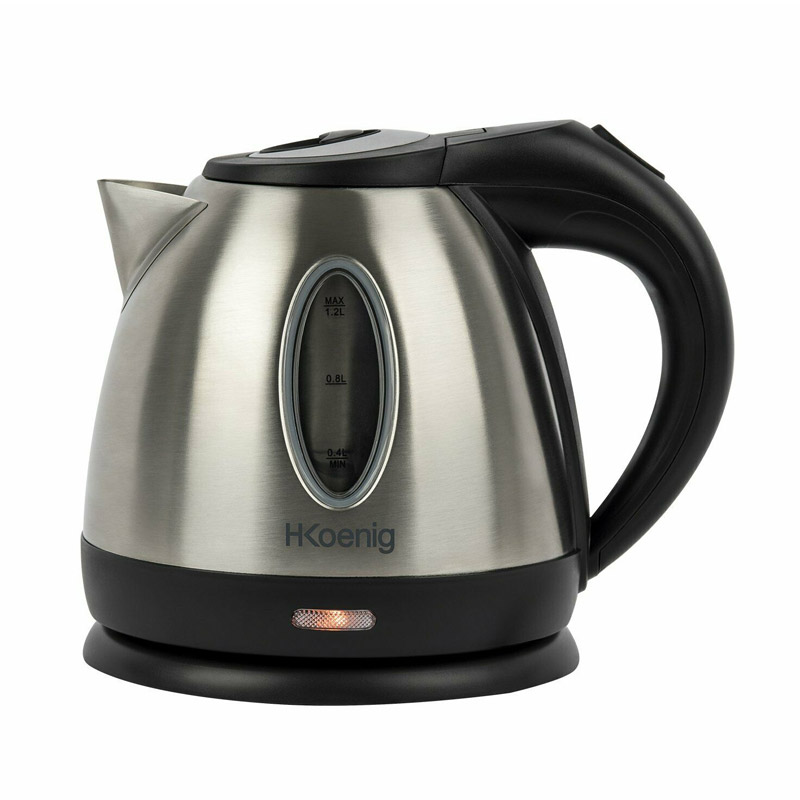 Ο ασύρματος ηλεκτρικός βραστήρας, από την εταιρία H.Koenig, έχει χωρητικότητα 1.2 Lt και ισχύ 1630 W. Διαθέτει σώμα από ανοξείδωτο ατσάλι, ένδειξη στάθμης νερού, μη θερμαινόμενη λαβή, αυτόματη απενεργοποίηση, ενδεικτική λυχνία ON/OFF και χώρο για την αποθήκευση του καλωδίου κάτω από τη βάση.