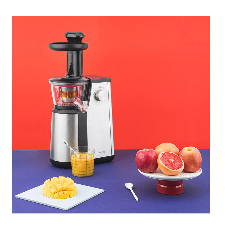 Ο αποχυμωτής, από την εταιρεία H.Koenig, σας επιτρέπει να απολαμβάνετε φρέσκους, νόστιμους και υγιεινούς χυμούς. Η τεχνολογία ήπιας πίεσης χαμηλής ταχύτητας και οι έλικες χωρίς λεπίδες, εξασφαλίζουν ποιοτικό χυμό με μέγιστη διατροφική πρόσληψη και με ελάχιστη σπατάλη. Δίνει 30% περισσότερο χυμό από έναν παραδοσιακό αποχυμωτή.