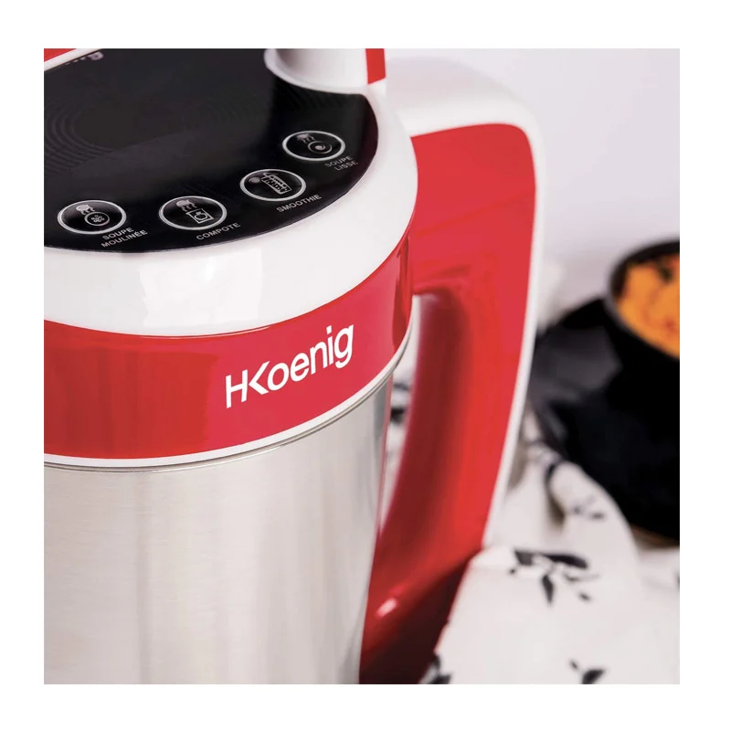 Ο παρασκευαστής σούπας, από την εταιρία H.Koenig, διαθέτει σώμα και λεπίδες από ανοξείδωτο ατσάλι και σας δίνει τη δυνατότητα να προετοιμάσετε σούπες βελουτέ, κομπόστες, πουρέ και smoothies. Έχει 4 προγράμματα, χωρητικότητα 1.1 Lt, μέγιστη θερμοκρασία μαγειρέματος 100 °C, χρόνο μαγειρέματος από 1 – 36 λεπτά και προστασία από την υπερθέρμανση.