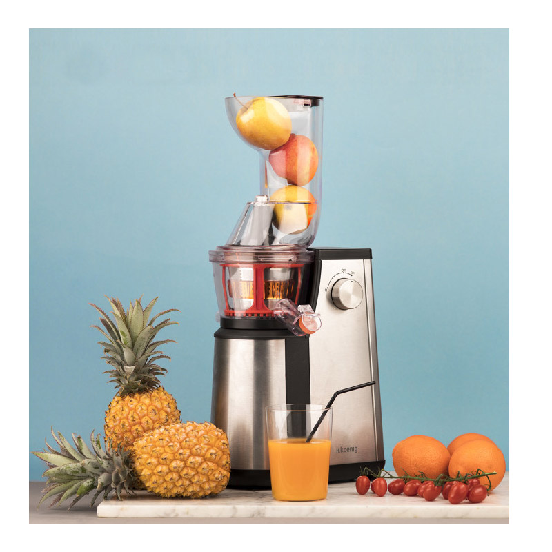 Ο αποχυμωτής, από την εταιρεία H.Koenig, σας επιτρέπει να απολαμβάνετε φρέσκους, νόστιμους και υγιεινούς χυμούς. Η τεχνολογία ήπιας πίεσης χαμηλής ταχύτητας και οι έλικες χωρίς λεπίδες, εξασφαλίζουν ποιοτικό χυμό με μέγιστη διατροφική πρόσληψη και με ελάχιστη σπατάλη. Δίνει 30% περισσότερο χυμό από έναν παραδοσιακό αποχυμωτή.