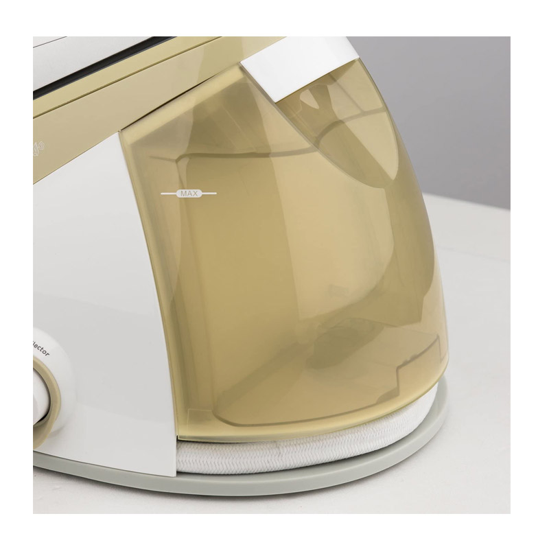Χρήσιμο με τις πολλαπλές λειτουργίες του, όπως αυτόματο κλείσιμο, ένδειξη δεξαμενής νερού και λειτουργία συμπίεσης. Διαθέτει πίεση ατμού 6 Bar, ροή ατμού 150 g / min και είναι έτοιμο για χρήση σε λιγότερο από ένα λεπτό. Επιπρόσθετα, η λειτουργία κάθετου ατμού διευκολύνει το σιδέρωμα των δύσκολων σημείων στα ρούχα και σε υφάσματα όπως οι κουρτίνες.