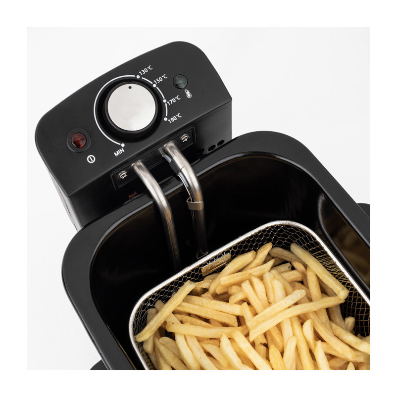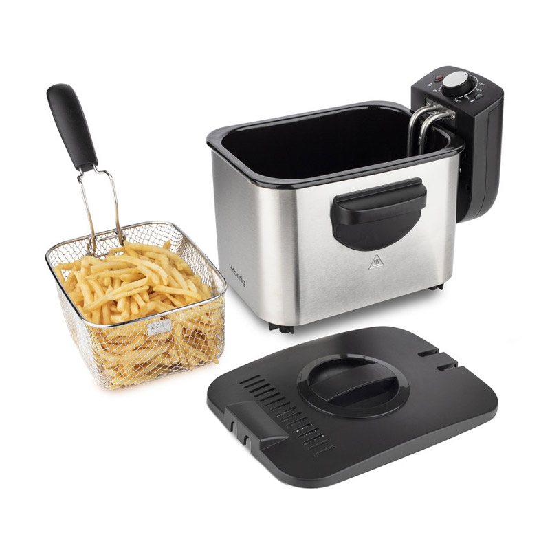 Η ηλεκτρική φριτέζα από την εταιρεία H.Koenig είναι κατασκευασμένη από ανοξείδωτο ατσάλι και έχει ισχυρή ισχύ 2200 W ώστε να θερμαίνει γρήγορα το λάδι και να μαγειρεύει ομοιόμορφα το φαγητό. Διαθέτει ρυθμιζόμενο θερμοστάτη, για να ρυθμίζετε τη θερμοκρασία σύμφωνα με το είδος του φαγητού, φίλτρο κατά της οσμής που σας επιτρέπει να μειώσετε τη μυρωδιά του τηγανίσματος, αφαιρούμενο καλάθι για να είναι εύκολη στο καθαρισμό της και αντιολισθητικά πόδια που εξασφαλίζουν τέλεια σταθερότητα της συσκευής στην επιφάνεια εργασίας. Επιπλέον έχει καπάκι με παράθυρο προβολής για να μπορείτε να ελέγχετε το στάδιο του μαγειρέματος.