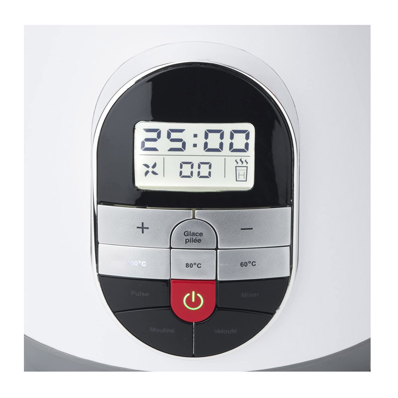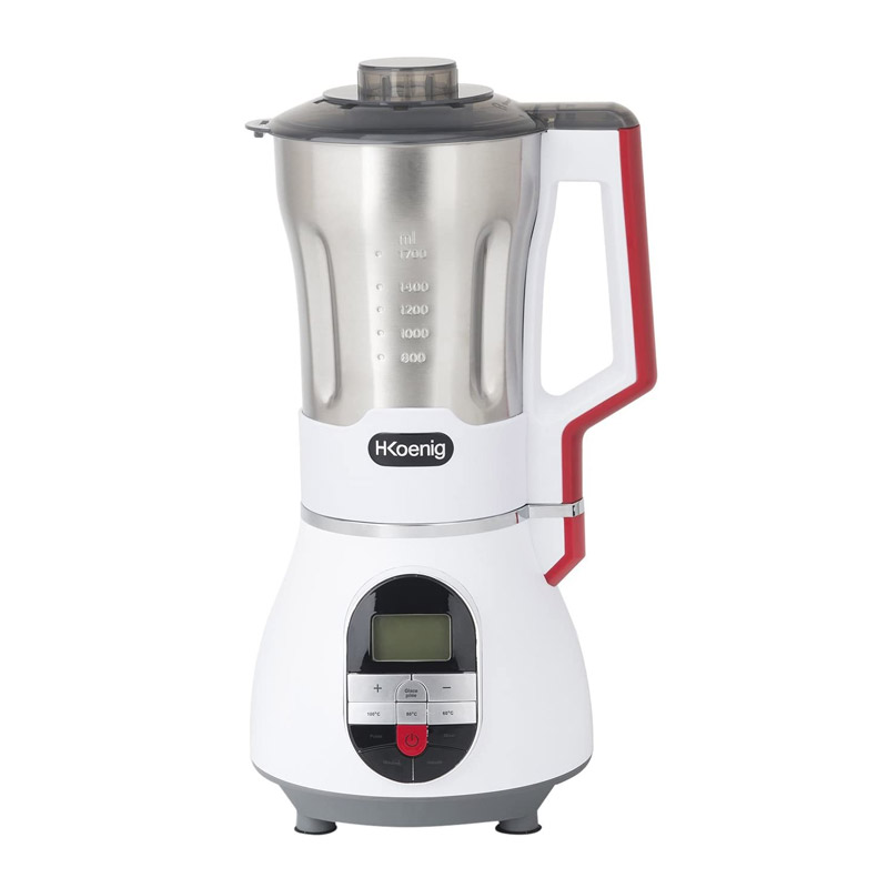 Ο παρασκευαστής σούπας, από την εταιρία H.Koenig, διαθέτει κανάτα ανθεκτική στη θερμότητα από ανοξείδωτο ατσάλι χωρητικότητας 1.7 Lt και σας δίνει τη δυνατότητα να προετοιμάσετε σούπες βελουτέ, κομπόστες, πουρέ, smoothies, να μαγειρέψετε τα λαχανικά σας χωρίς να τα συνθλίψετε ακόμη και να θρυμματίσετε πάγο. Μπορείτε να επιλέξετε ανάμεσα σε 3 ταχύτητες, τη λειτουργία Turbo και τη λειτουργία του προγράμματος μαγειρέματος στους 60, 80 και 100 °C.