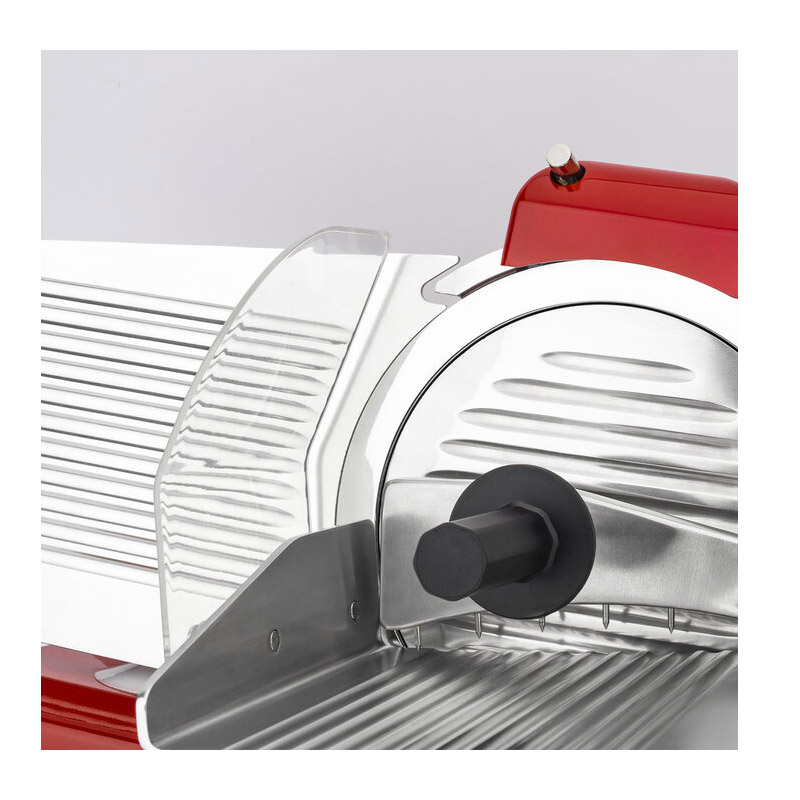 Η μηχανή κοπής, έχει ενσωματωμένο ακονιστήρι λεπίδας για βέλτιστο αποτέλεσμα κοπής και φαρδιά πλάκα που διευκολύνει την τοποθέτηση ενός μεγάλου ζαμπόν. Τα 4 αντιολισθητικά πόδια, εξαλείφουν τον κίνδυνο πτώσης ή αστάθειας.
