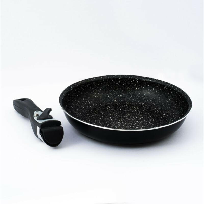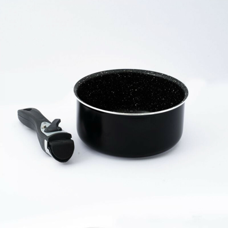 Herzberg Σετ Μαγειρικών Σκευών 7 τεμαχίων με πέτρινη επίστρωση και αποσπώενη λαβή, , Μαύρο HG8053-BLK