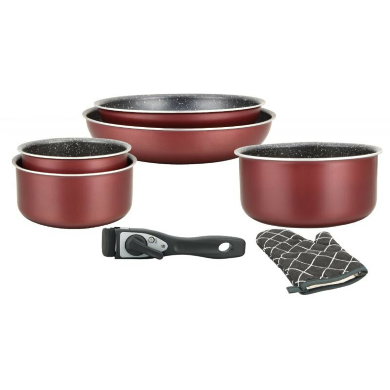 Herzberg Σετ Μαγειρικών Σκευών 7 τεμαχίων με επίστρωση πέτρας και αποσπώμενη λαβή, Μπορντό HG8053-BR
