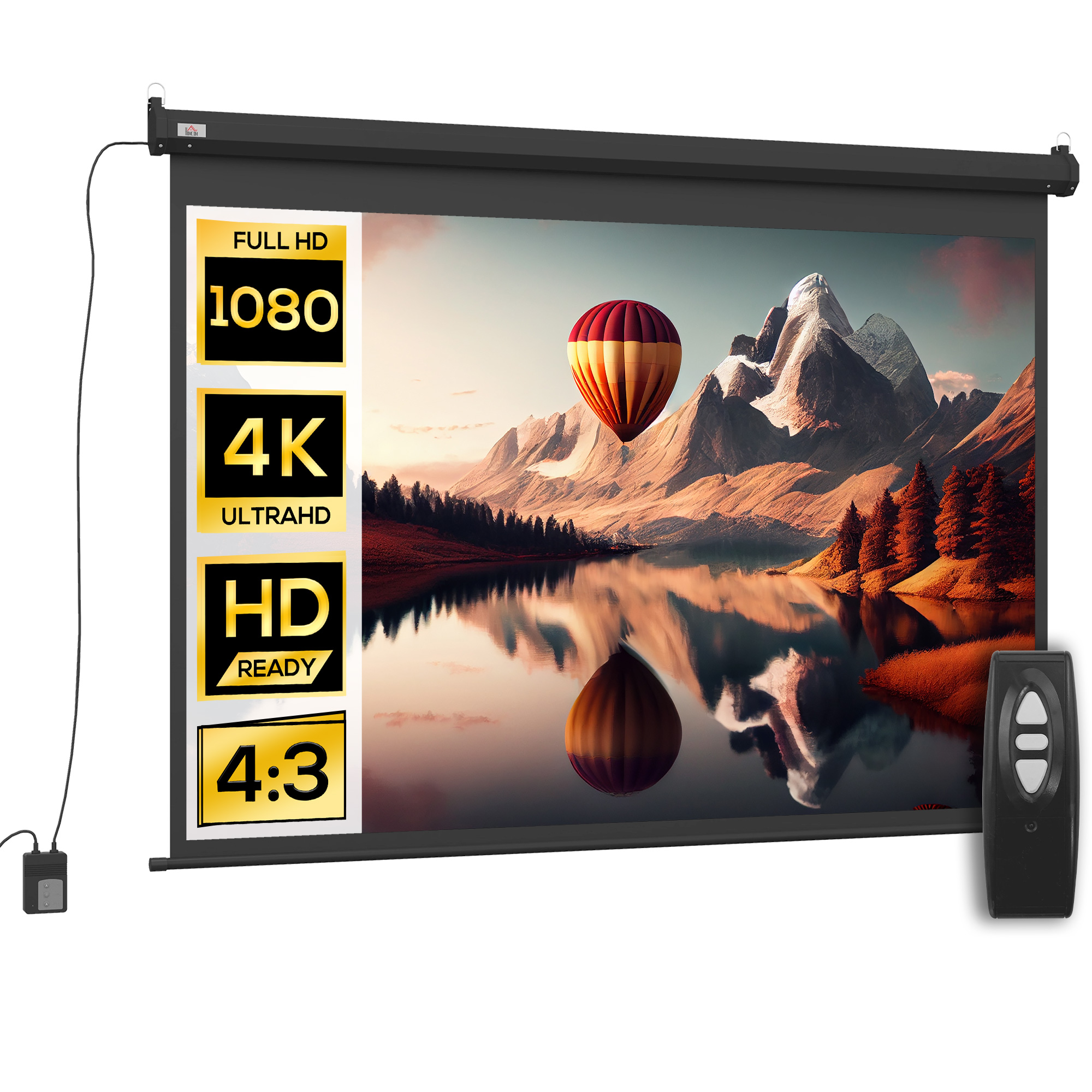 Με αυτήν την οθόνη προβολέα με μοτέρ, δεν χρειάζεται να πάτε στον κινηματογράφο για να δείτε μια ταινία με τον καλύτερο τρόπο. Ιδανική για χρήση στο σπίτι για να δημιουργήσετε τον προσωπικό σας κινηματογράφο, αυτή η οθόνη προβολέα είναι επίσης ιδανική για επαγγελματικές παρουσιάσεις ή συνέδρια. Το τηλεχειριστήριο σας επιτρέπει να ρυθμίζετε εύκολα την άνοδο και την κάθοδο της οθόνης και η λευκή οθόνη εξασφαλίζει βέλτιστη προβολή.