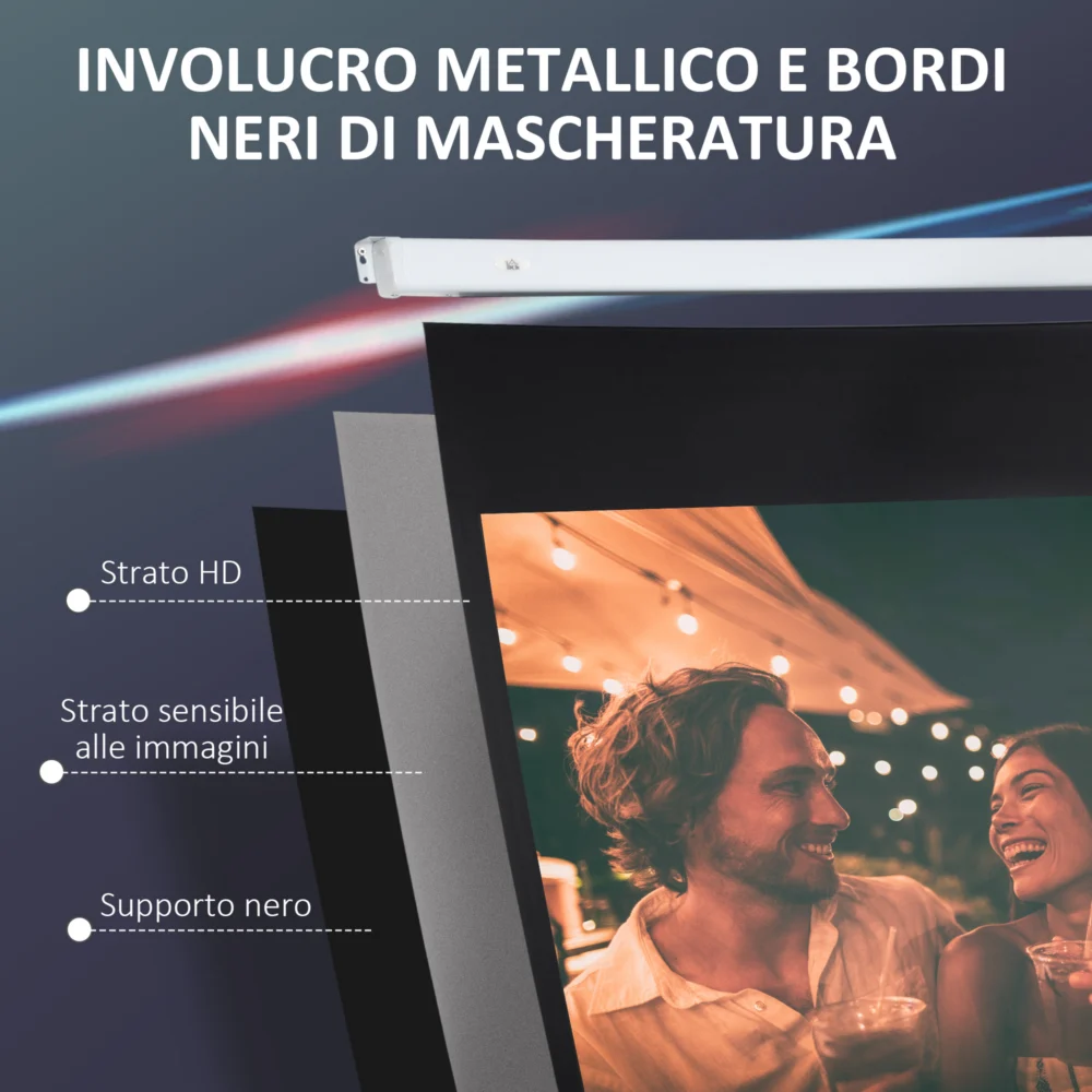 Κάλυμμα HOMCOM 100 ιντσών προβολέα με τηλεχειριστήριο, από PVC και μέταλλο, 253Lx7,5×168 cm, Λευκό 001-015V91WT