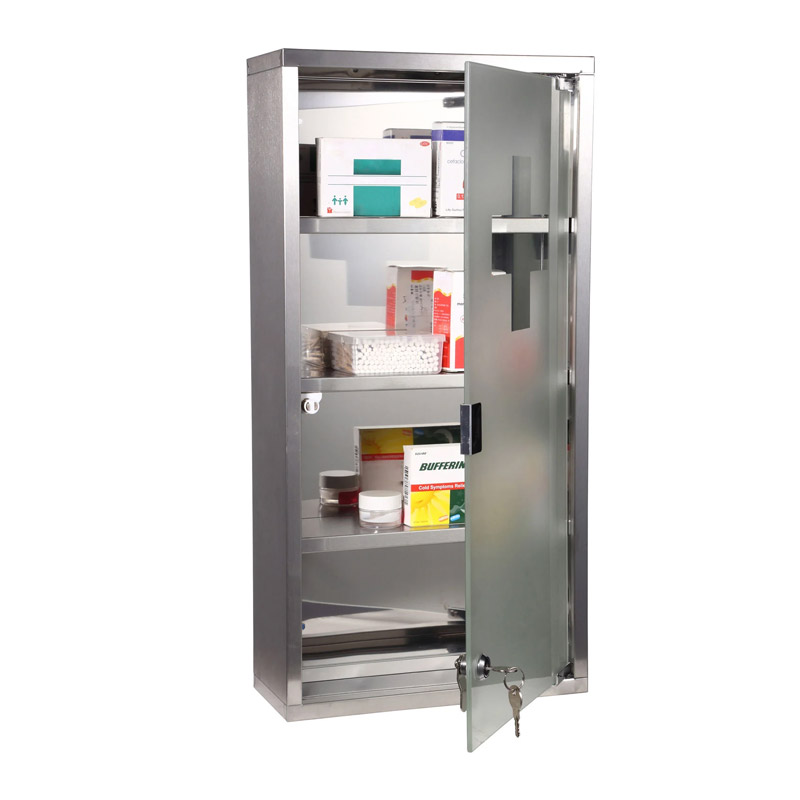 Το ντουλάπι φαρμακείου, από την εταιρία HOMCOM, είναι κατασκευασμένο από υψηλής ποιότητας σίδηρο, χαρακτηριστικό που το καθιστά ανθεκτικό στον χρόνο και στις χρήσεις. Διαθέτει 4 ράφια και γυάλινη πόρτα, που ασφαλίζει με κλειδί. Εξασφαλίζει μια ασφαλή και οργανωμένη αποθήκευση των φαρμάκων και άλλων πρώτων βοηθειών και είναι ιδανικό για ιατρείο, σπίτι, γραφείο, αθλητικό σωματείο και εργαστήριο.