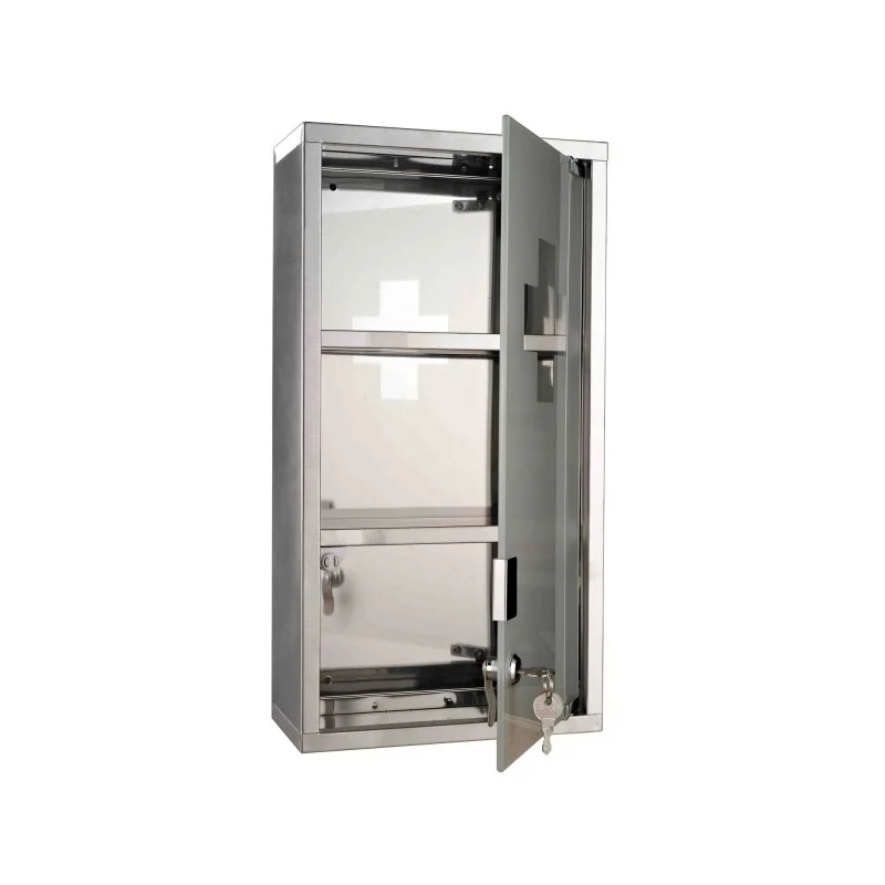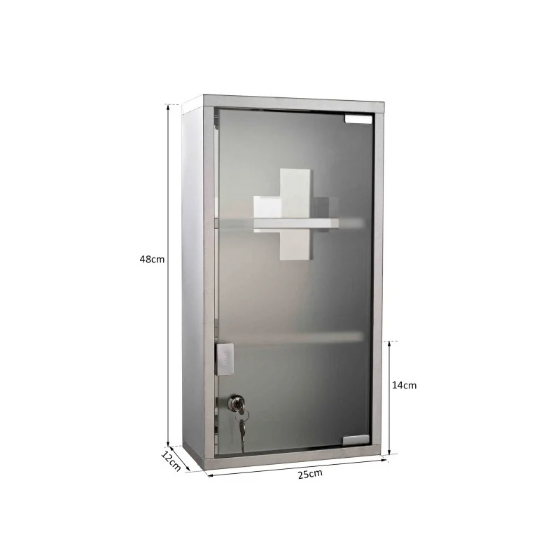 Το ντουλάπι φαρμακείου, από την εταιρία HOMCOM, είναι κατασκευασμένο από ανοξείδωτο ατσάλι, χαρακτηριστικό που το καθιστά ανθεκτικό στον χρόνο και στις χρήσεις. Διαθέτει 2 ράφια και γυάλινη ματ πόρτα, που ασφαλίζει με κλειδί. Εξασφαλίζει μια ασφαλή και οργανωμένη αποθήκευση των φαρμάκων και άλλων πρώτων βοηθειών και είναι ιδανικό για ιατρείο, σπίτι, γραφείο, αθλητικό σωματείο και εργαστήριο.