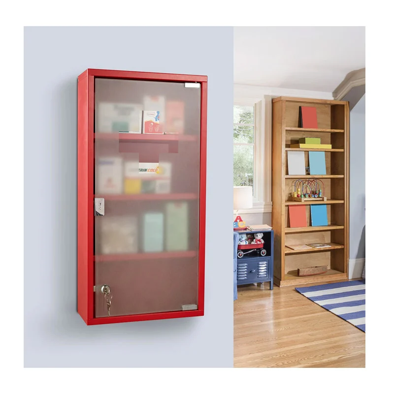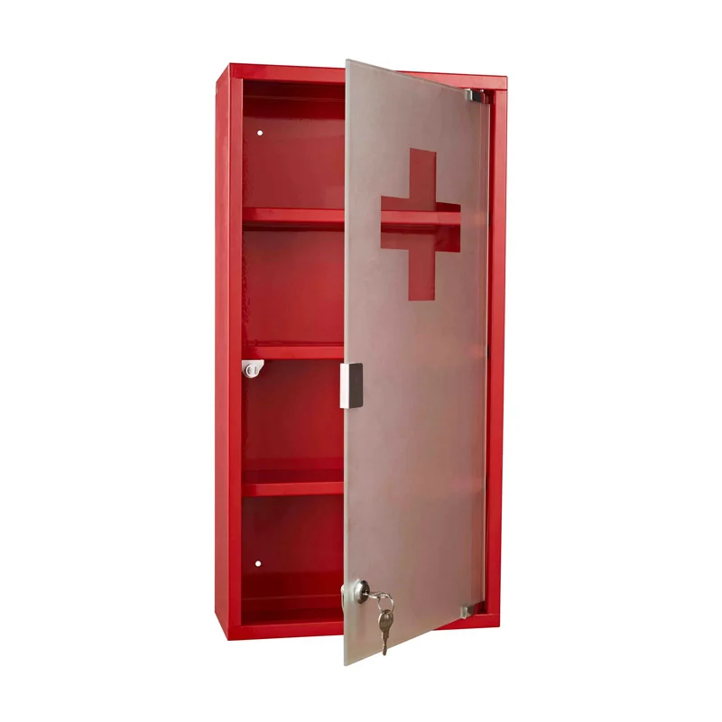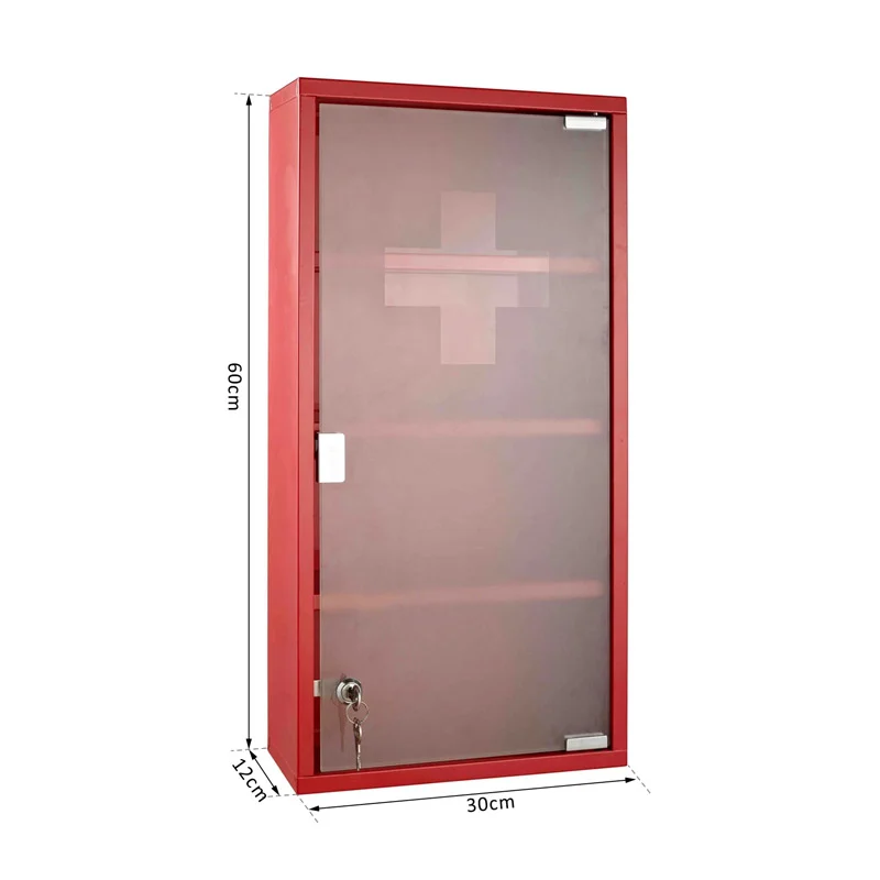 Το ντουλάπι φαρμακείου, από την εταιρία HOMCOM, είναι κατασκευασμένο από υψηλής ποιότητας σίδηρο, χαρακτηριστικό που το καθιστά ανθεκτικό στον χρόνο και στις χρήσεις. Διαθέτει 4 ράφια και γυάλινη πόρτα, που ασφαλίζει με κλειδί. Εξασφαλίζει μια ασφαλή και οργανωμένη αποθήκευση των φαρμάκων και άλλων πρώτων βοηθειών και είναι ιδανικό για ιατρείο, σπίτι, γραφείο, αθλητικό σωματείο και εργαστήριο.