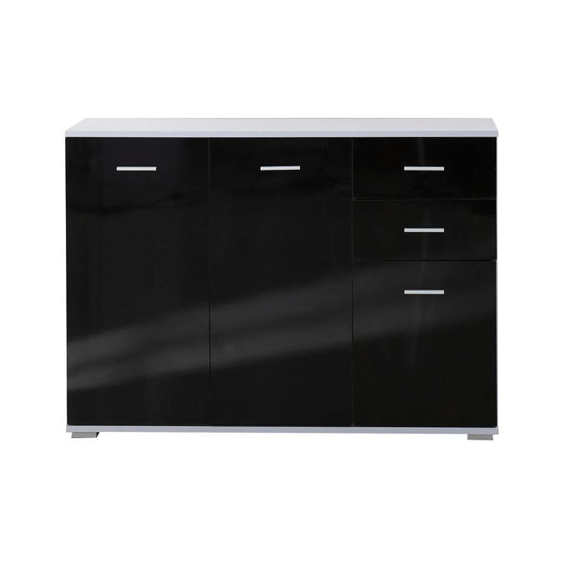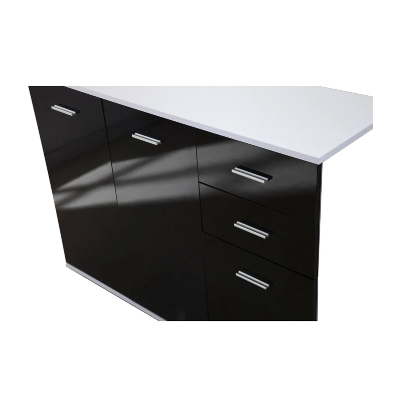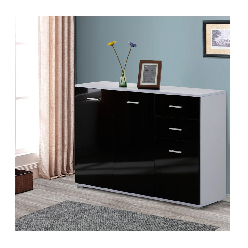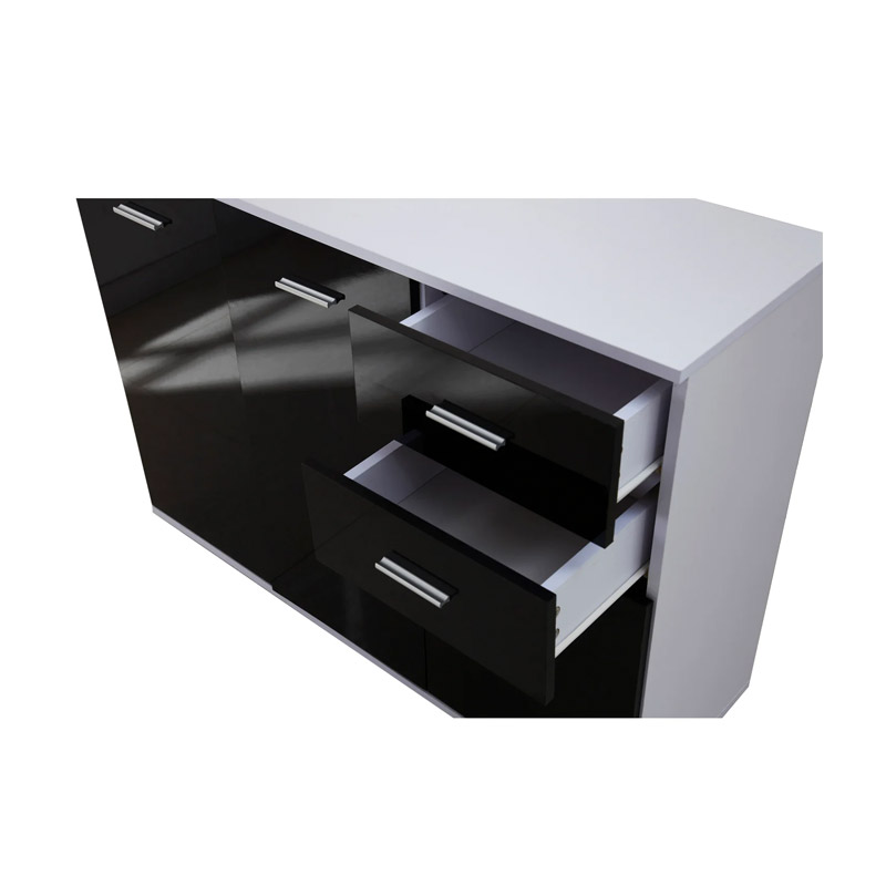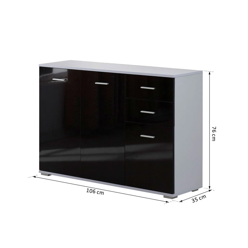 Η κονσόλα, από την εταιρία HOMCOM, είναι κατασκευασμένη από MDF με γυαλιστερό μαύρο εφέ και λευκά ματ φινιρίσματα, κομψό και ανθεκτικό στις γρατζουνιές. Το γυαλιστερό μαύρο χρώμα της δομής, ενσωματώνεται τέλεια με τις μοντέρνες λαβές αλουμινίου, για μοναδικό σχεδιασμό. Διαθέτει 3 αποθηκευτικούς χώρους και 2 ευρύχωρα συρτάρια. Η μεγάλη επιφάνειά της είναι ιδανική για τα προσωπικά σας αντικείμενα, όπως βιβλία, διακοσμητικά αντικείμενα ή βάζα με λουλούδια.