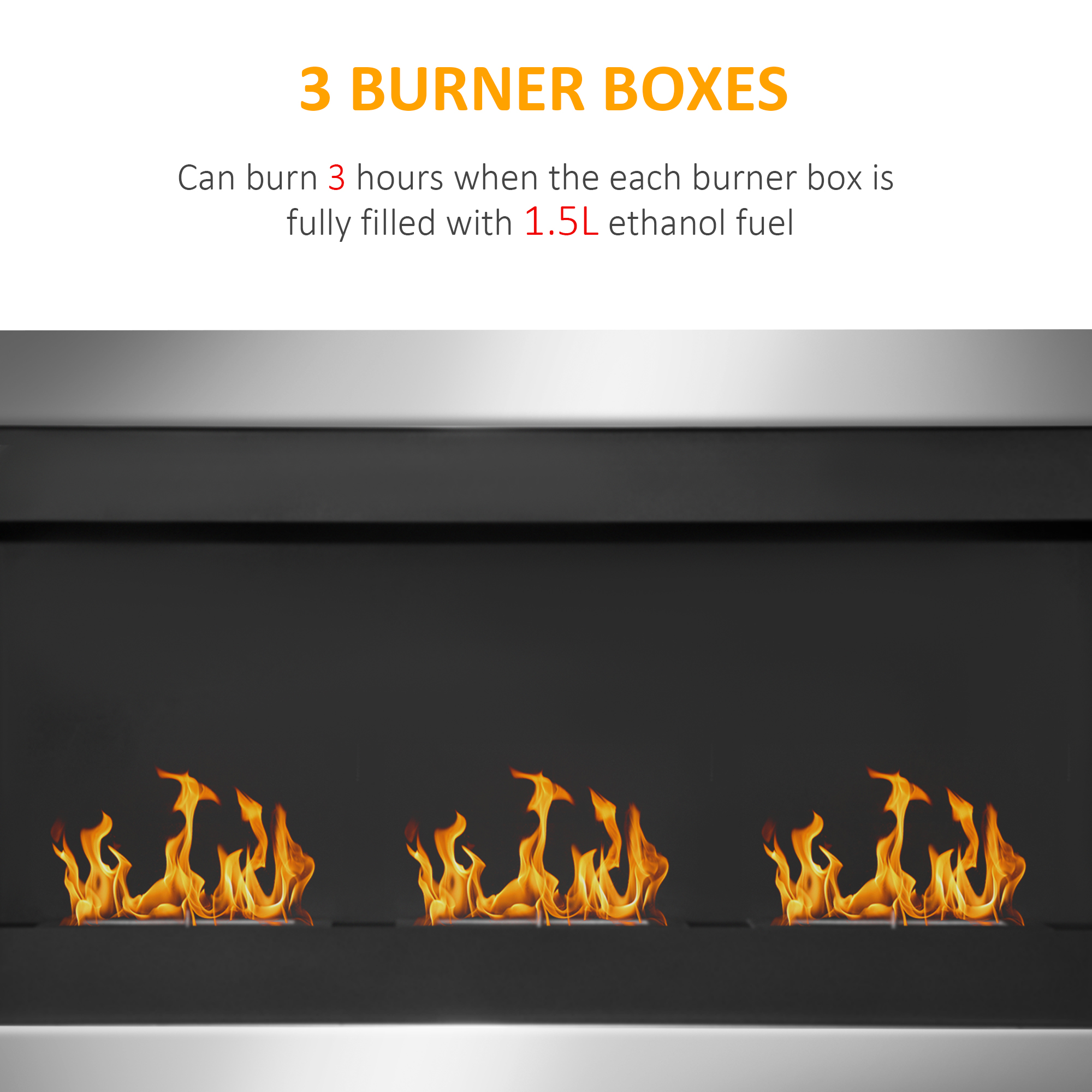 Επιτοίχιο τζάκι βιοαιθανόλης HomCom με 3 καυστήρες από ανοξείδωτο χάλυβα 1,5LT 110 x 63 x 16 cm 02-0759