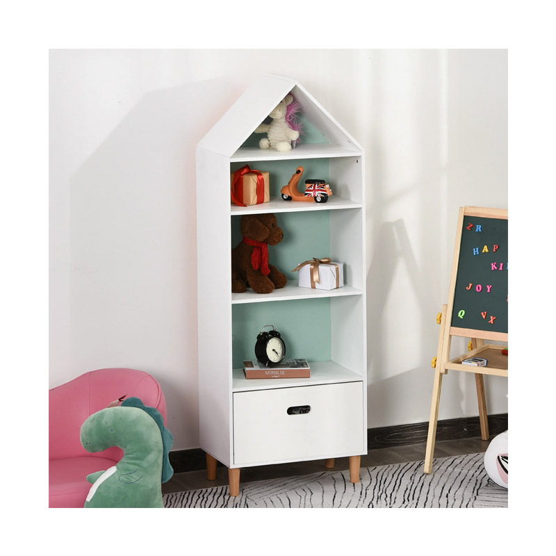 Η παιδική βιβλιοθήκη από την εταιρεία HOMCOM αποτελεί την ιδανική προσθήκη για κάθε παιδικό δωμάτιο. Είναι κατασκευασμένη από ανθεκτικό ξύλο MDF, με λευκό φινίρισμα εξωτερικά για να αντέχει στις καθημερινές φθορές και με πόδια από μασίφ ξύλο πεύκου για μεγαλύτερη σταθερότητα. Διαθέτει 4 ράφια και 1 συρτάρι που σας προσφέρουν άφθονο χώρο για να αποθηκεύσετε και να οργανώσετε τα βιβλία ή τα παιχνίδια των παιδιών σας.