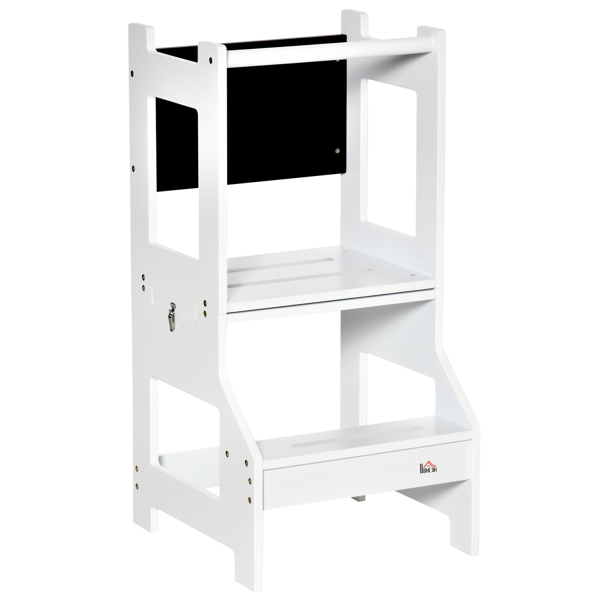 Qaba Montessori 2 σε 1 Αποσπώμενη σκάλα MDF, με σκαμπό, Περιλαμβάνεται μαυροπίνακας, για παιδιά 3-6 ετών, λευκό 312-052