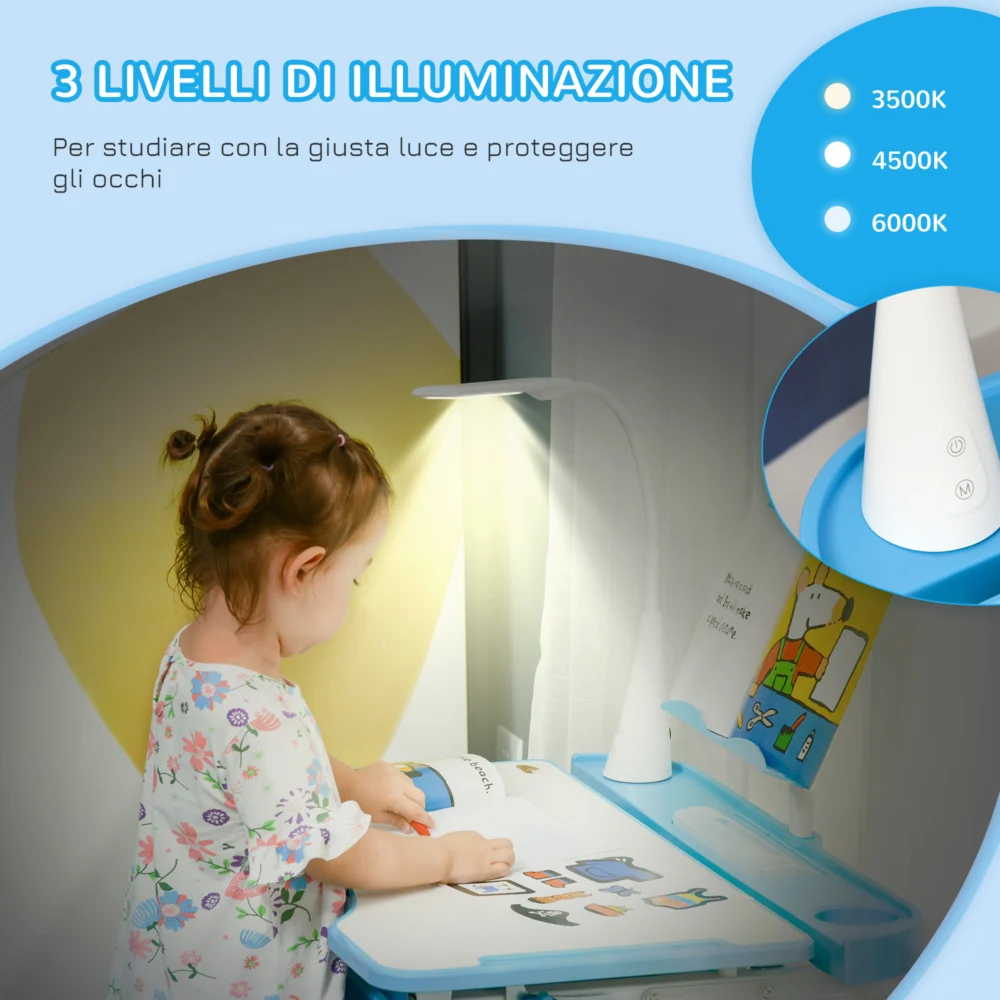 Σχολικό Γραφείο HOMCOM με Καρέκλα για Παιδιά 6-12 ετών Ρυθμιζόμενο ύψος Ανακλινόμενη Κορυφή – Μπλε 312-062BU