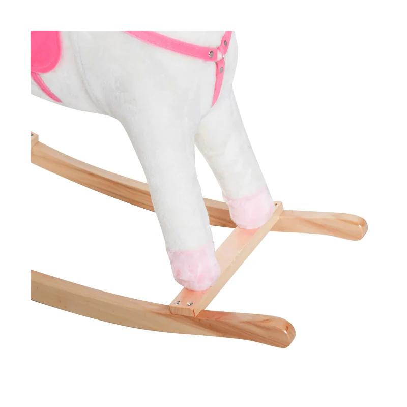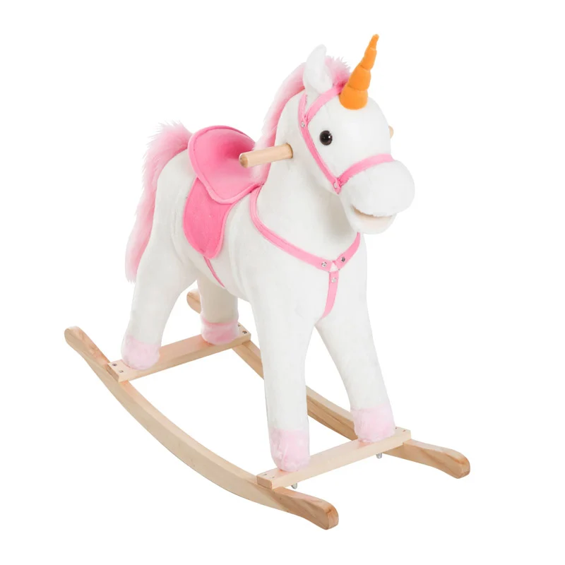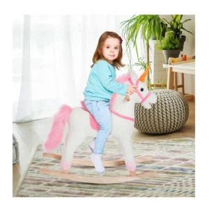 Ο λούτρινος κουνιστός μονόκερος, από την εταιρία HOMCOM, είναι κατασκευασμένος από μαλακό και βελούδινο υλικό. Διαθέτει ξύλινη βάση, είναι εξοπλισμένο με 2 λαβές, σέλα και μπορεί να αντέξει βάρος έως 40 Kg.