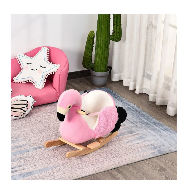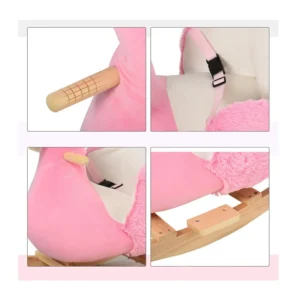 Το λούτρινο φλαμίνγκο, από την εταιρία HOMCOM, έχει ανθεκτική ξύλινη βάση και βελούδινο μαλακό κάθισμα. Διαθέτει λαβές και ζώνη ασφαλείας για μεγαλύτερη ασφάλεια και σταθερότητα. Προορίζεται για παιδιά από 18 μηνών και άνω, κάτω από την επίβλεψη ενηλίκων.