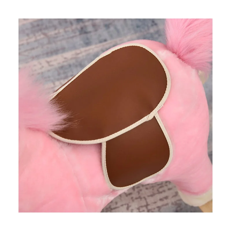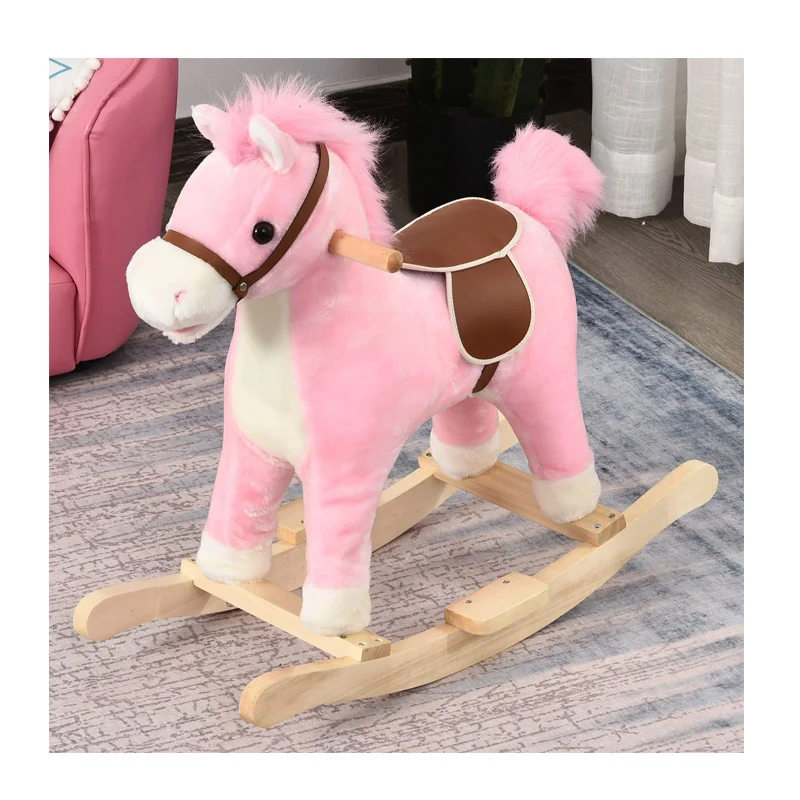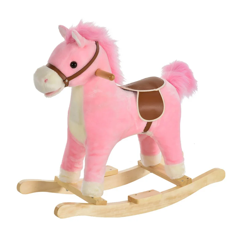 Λούτρινο Κουνιστό Αλογάκι με Μουσική και Ξύλινη Βάση Χρώματος Ροζ HOMCOM 330-109PK
