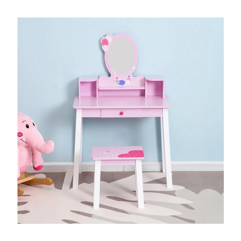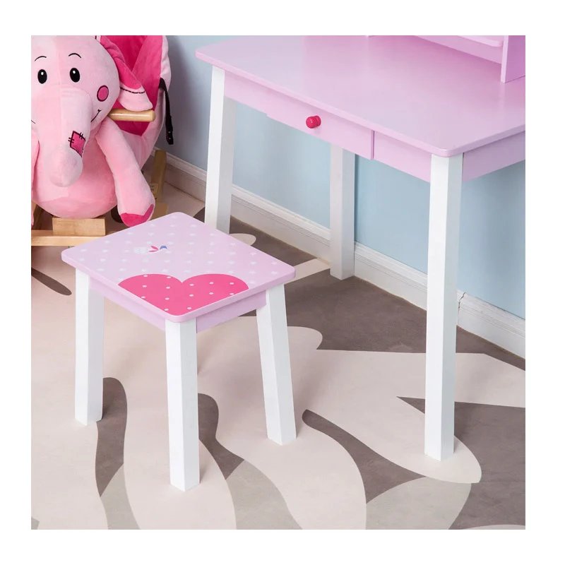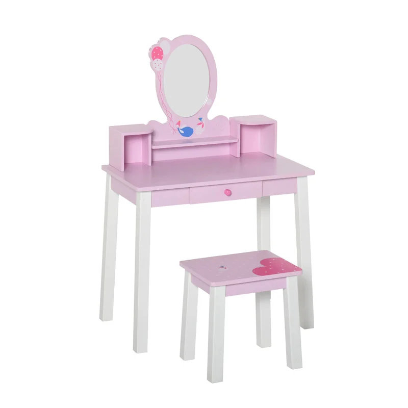 Παιδικό Ξύλινο Μπουντουάρ με Καθρέπτη και Σκαμπό 60 x 34 x 93 cm HOMCOM 350-014