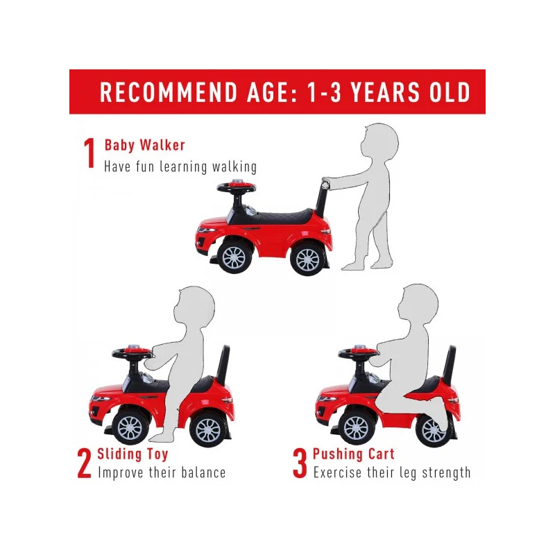 Αυτοκινητάκι – Περπατούρα 3 σε 1 Χρώματος Κόκκινο HOMCOM 370-083RD