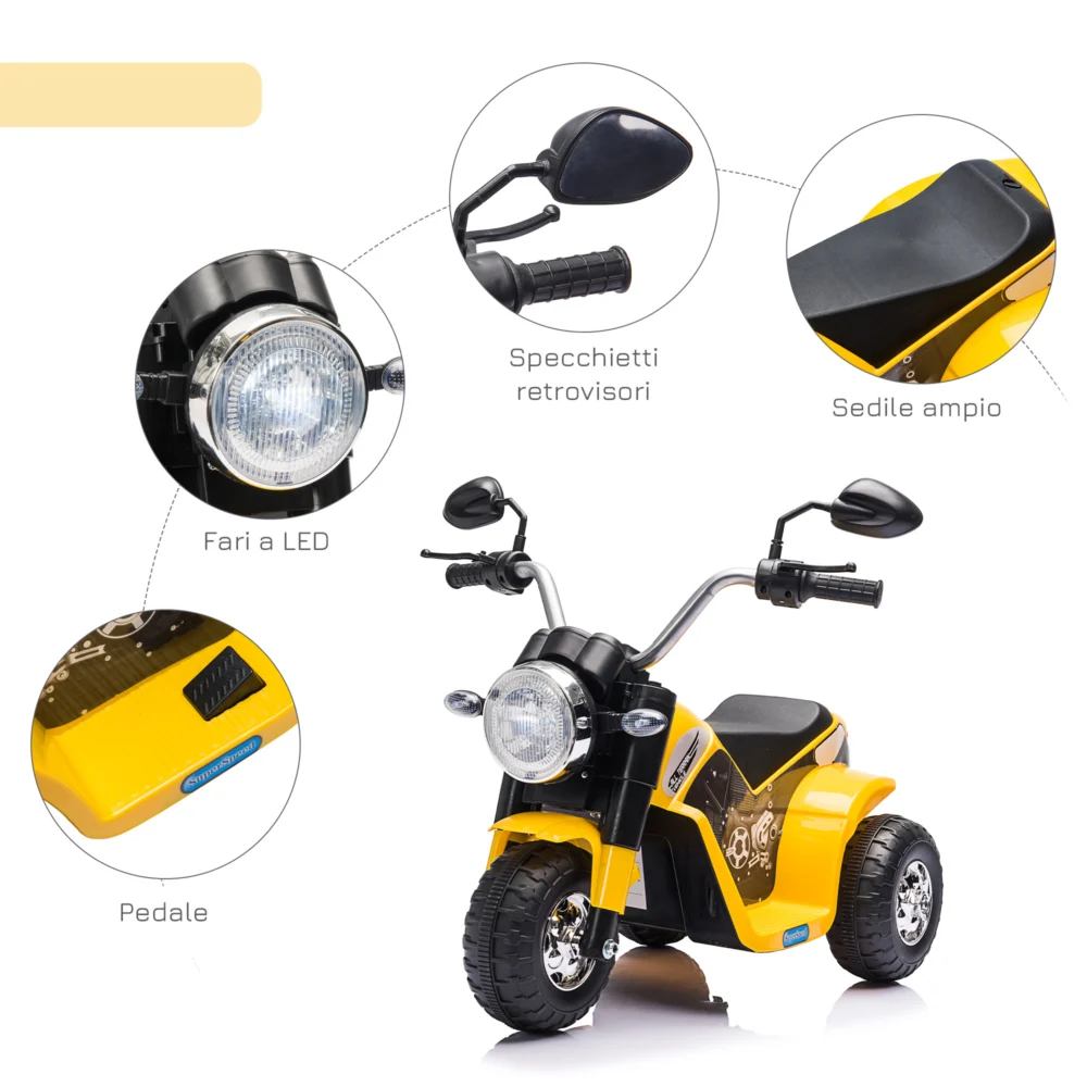 HOMCOM Ηλεκτρική μοτοσυκλέτα για παιδιά 18-36 μηνών Επαναφορτιζόμενη μπαταρία 3 τροχών – Κίτρινο 370-188V90YL