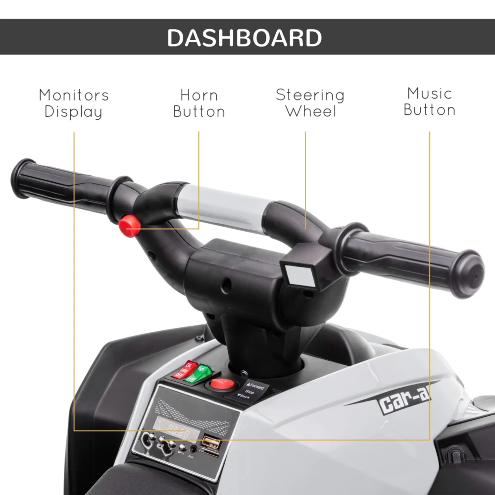 HOMCOM Quad για παιδιά 3-5 ετών Ηλεκτρικό 12V, 2 ταχυτήτων, φαρδιοί τροχοί με ανάρτηση και προβολείς LED, λευκό 370-235V90WT