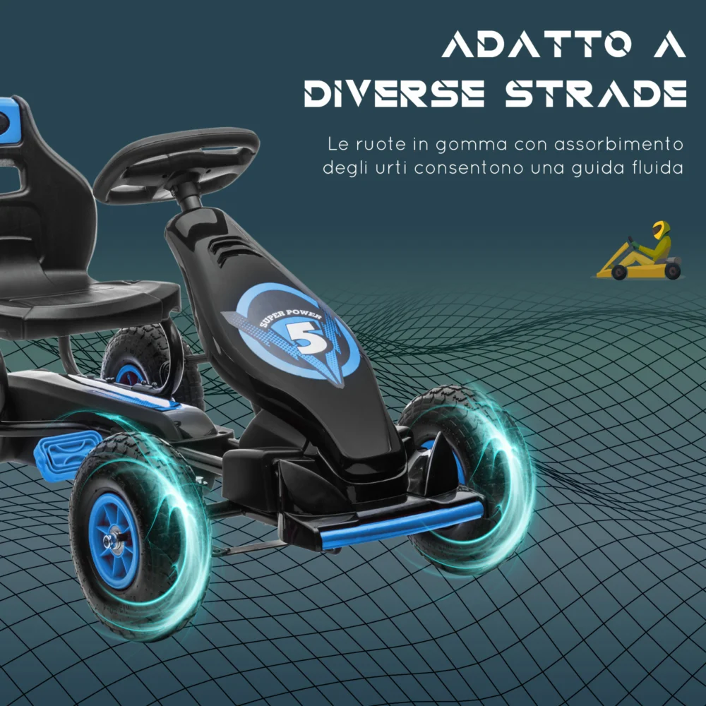 HOMCOM Pedal Go Kart για παιδιά από 5-12 ετών με ρυθμιζόμενο κάθισμα και φουσκωτούς τροχούς, μπλε 370-256V00BU