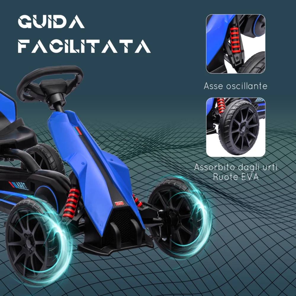 HOMCOM Pedal Go Kart για παιδιά 3-8 ετών με ρυθμιζόμενο κάθισμα και τροχούς EVA, 100x58x58,5 cm, μπλε 370-286V00BU