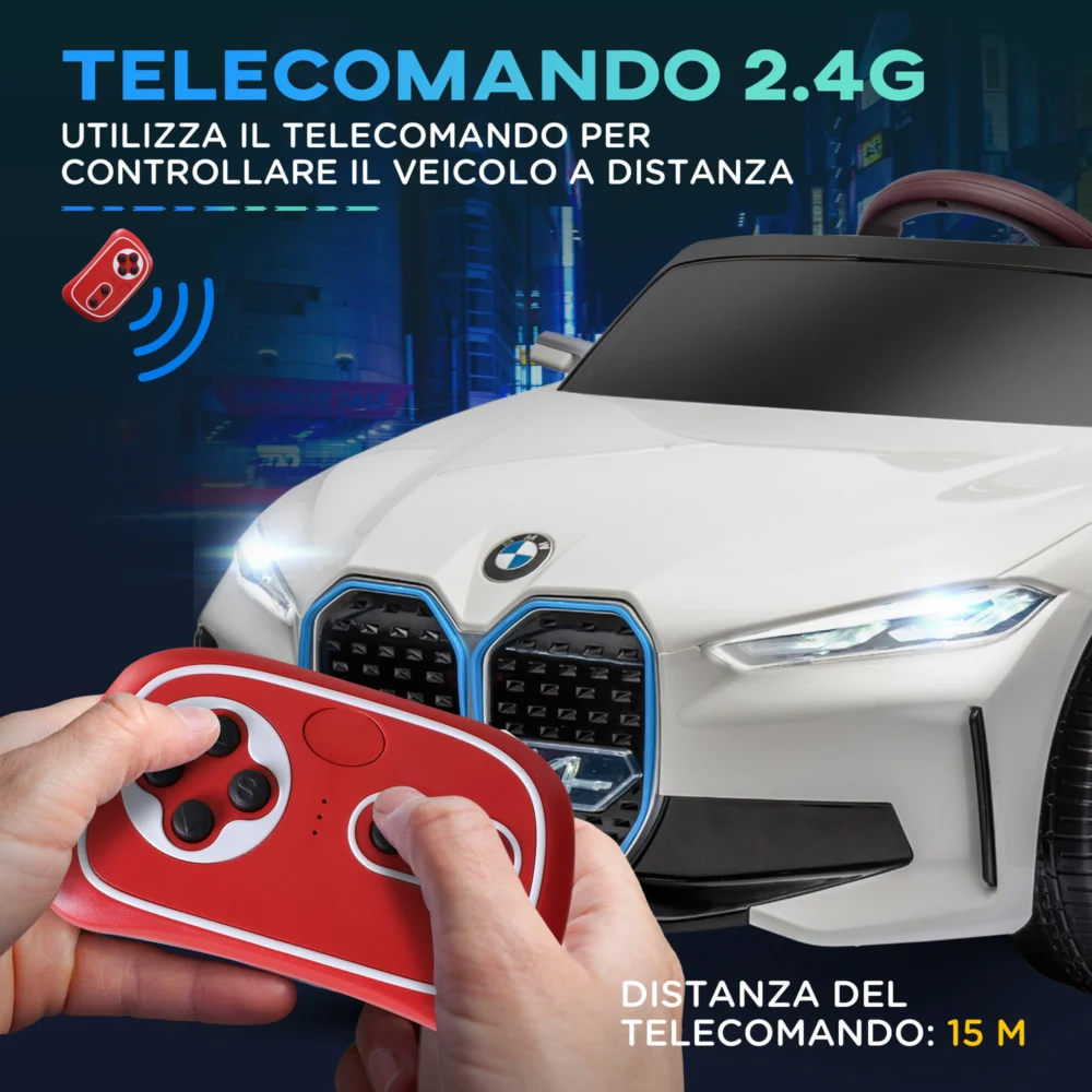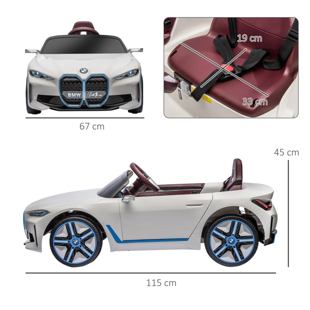 HOMCOM Electric Ride-On Toy Car για παιδιά 3-8 ετών με δίπλωμα BMW με Τηλεχειριστήριο, Κόρνα και Προβολείς, 115x67x45 cm, Λευκό 370-294V90WT