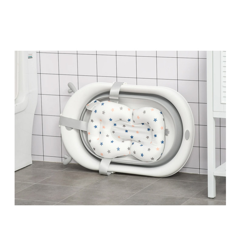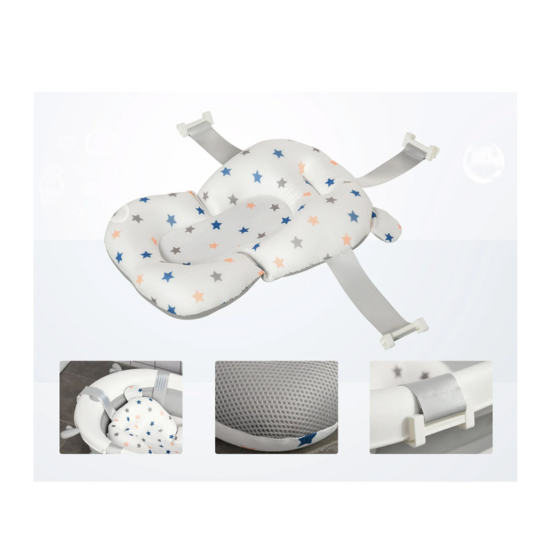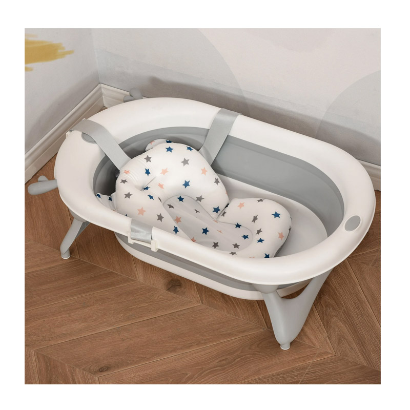 Η μπανιέρα, περιλαμβάνει με μαξιλάρι, φιλικό απέναντι στο ευαίσθητο δέρμα του παιδιού, στεγνώνει εύκολα για βολική χρήση και διαθέτει 3 ρυθμιζόμενες ταινίες στερέωσης. Μπορείτε να ρυθμίσετε το ύψος μεταξύ του μαξιλαριού και του νερού μετακινώντας τα ανάλογα με τις ανάγκες σας. Εξοπλισμένη με 4 αναδιπλούμενα πόδια στήριξης με αντιολισθητικά πέλματα, για να παρέχει μεγαλύτερη σταθερότητα και ασφάλεια κατά το μπάνιο του μωρού σας.