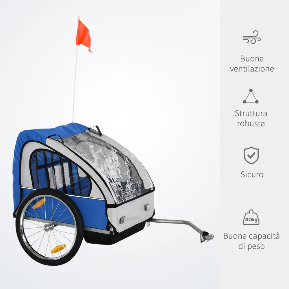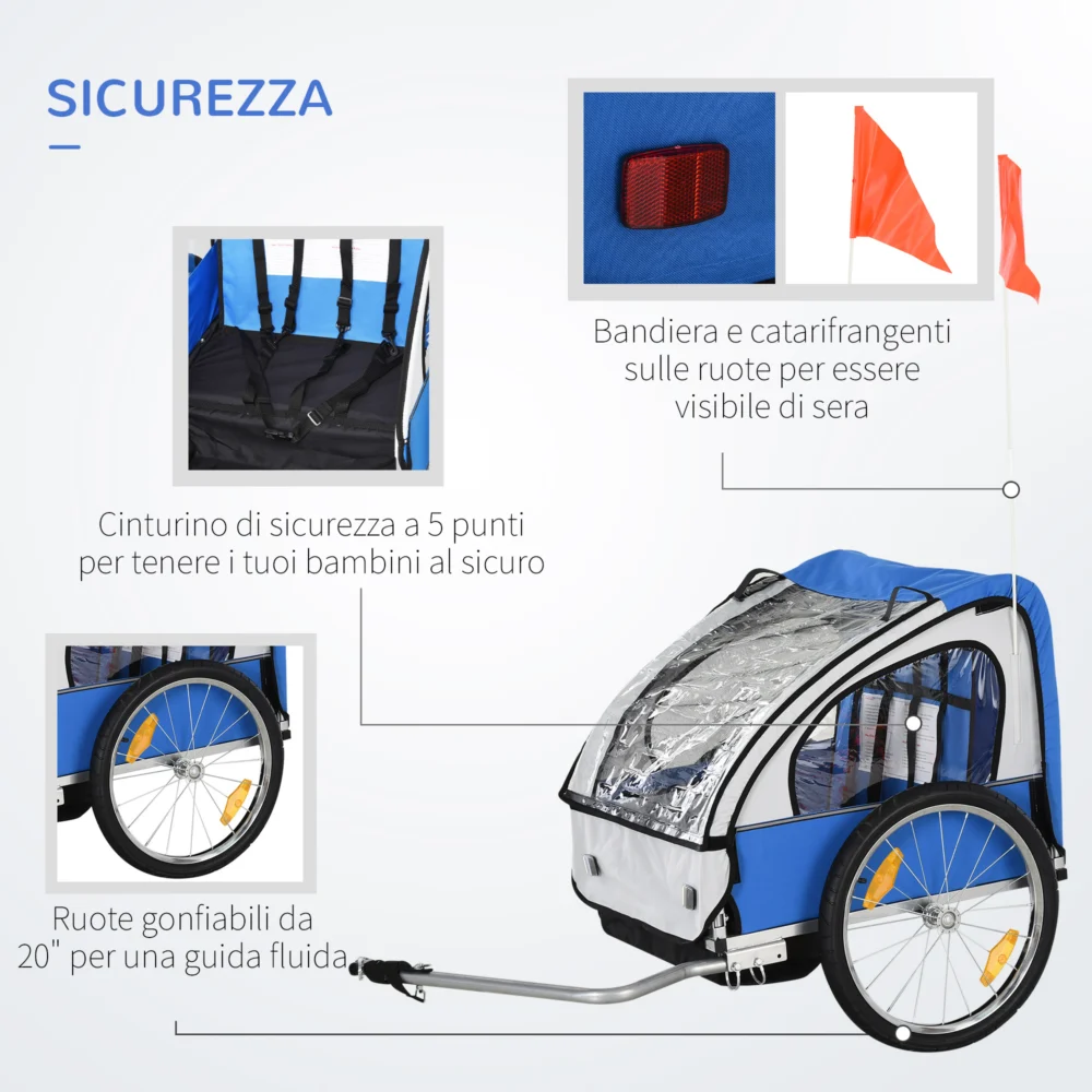 Homcom Παιδικό Ρυμουλκούμενο Ποδήλατο 2 θέσεων με Ζώνες Ασφαλείας από Ατσάλι και Μπλε Ύφασμα Oxford 440-008BU