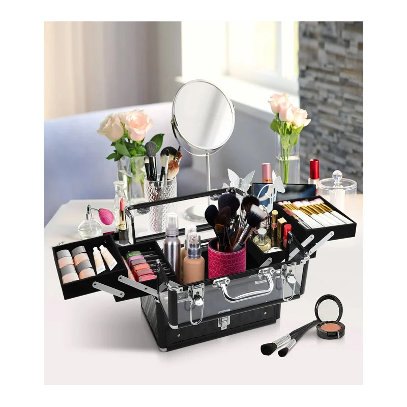 Το βαλιτσάκι καλλυντικών, από την εταιρία HOMCOM, θα σας βοηθήσει να διατηρείτε τα καλλυντικά σας πάντα οργανωμένα και ασφαλή. Είναι κατασκευασμένο από αλουμίνιο, με ενισχυμένες γωνιές για μεγαλύτερη ασφάλεια και ανθεκτικότητα. Διαθέτει μεγάλο, ενιαίο εσωτερικό χώρο, επενδεδυμένο με μαλακή τσόχα και 4 συρόμενα ράφια. Έχει κλειδαριά με κλειδί για μέγιστη ασφάλεια και άνετη λαβή μεταφοράς ώστε να μπορείτε να το μεταφέρετε εύκολα.