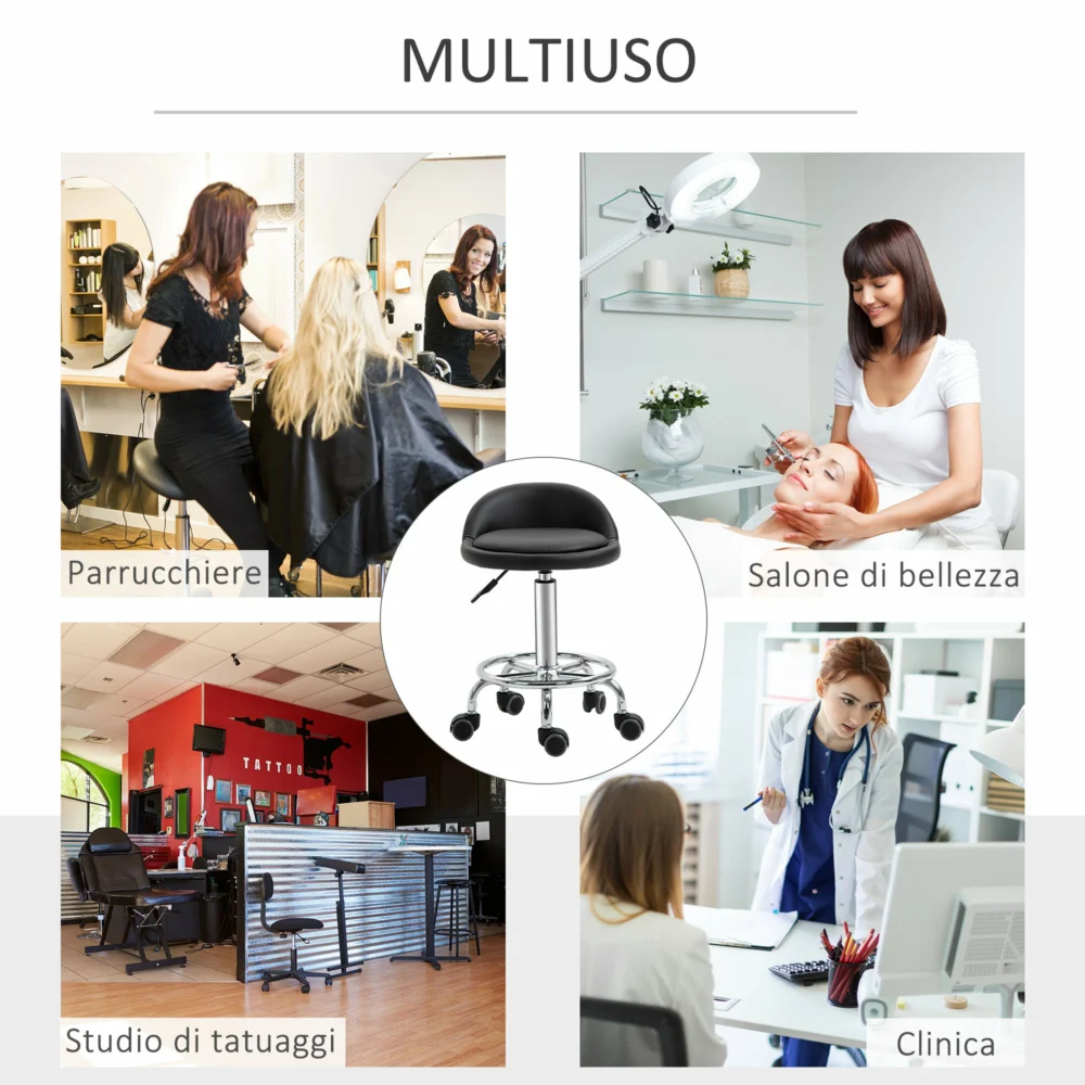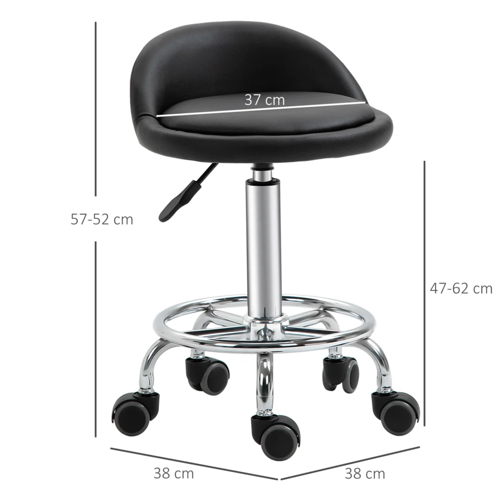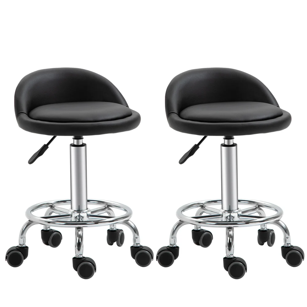 HOMCOM Σετ 2 περιστρεφόμενα σκαμπό με ρόδες, ρυθμιζόμενο ύψος και κάλυμμα από δερματίνη PU, 38x38x57-72cm 503-016