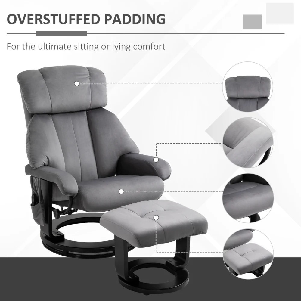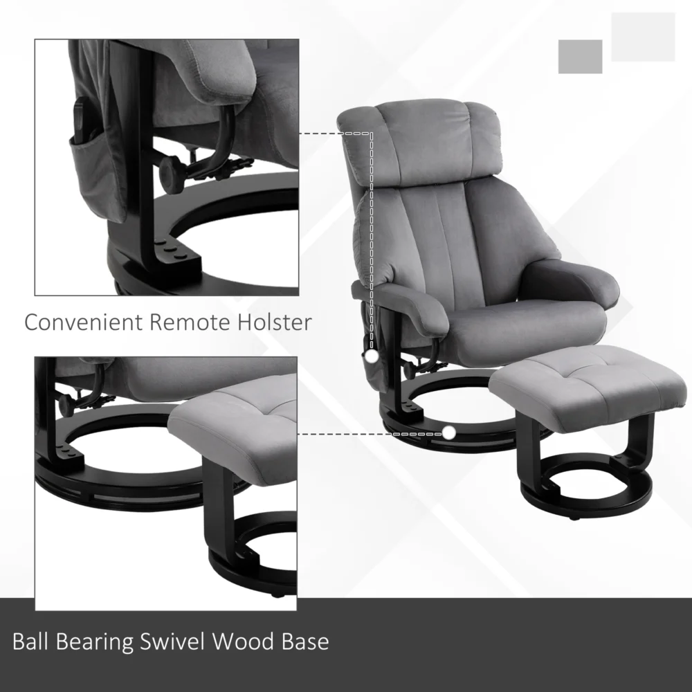 HOMCOM Πολυθρόνα Μασάζ Ανακλινόμενη με Υποπόδιο και Τηλεχειριστήριο από Συνθετικό Δέρμα PU, 76x80x102 εκ., Γκρι 700-008V03GY