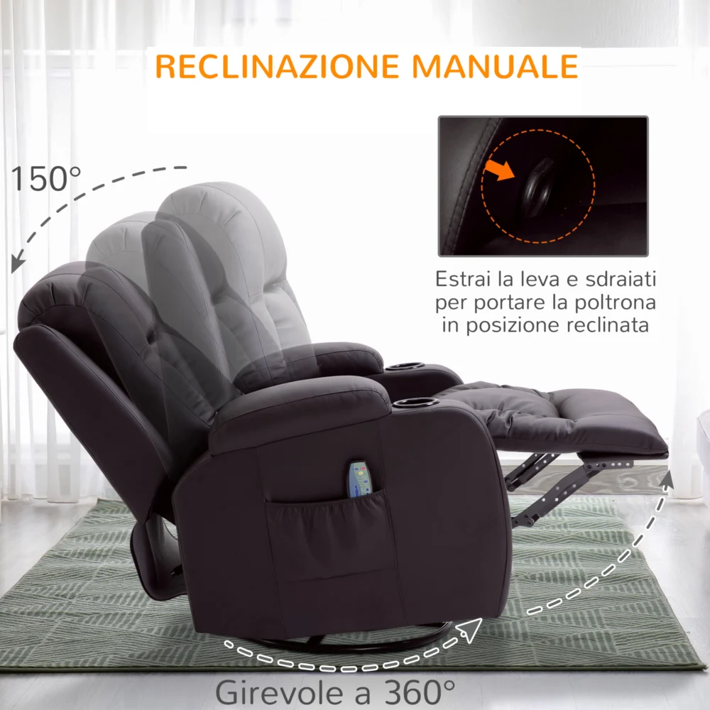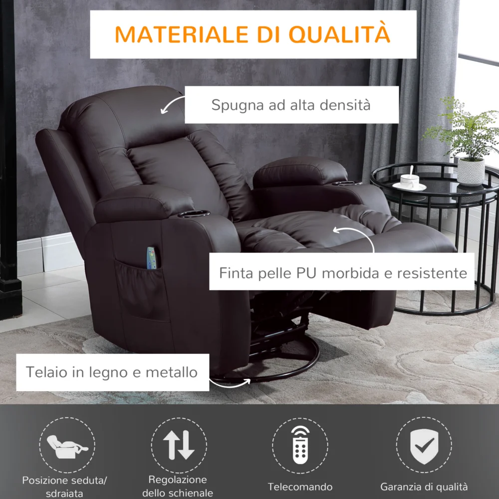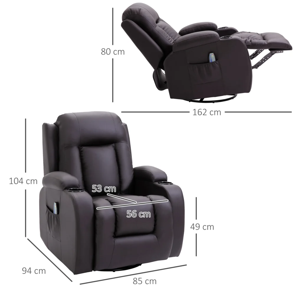 HOMCOM Χαλαρωτικό Μασάζ και Θερμαινόμενη Πολυθρόνα με Τηλεχειριστήριο, 85x94x104cm, Καφέ Faux Leather 700-050V92DR