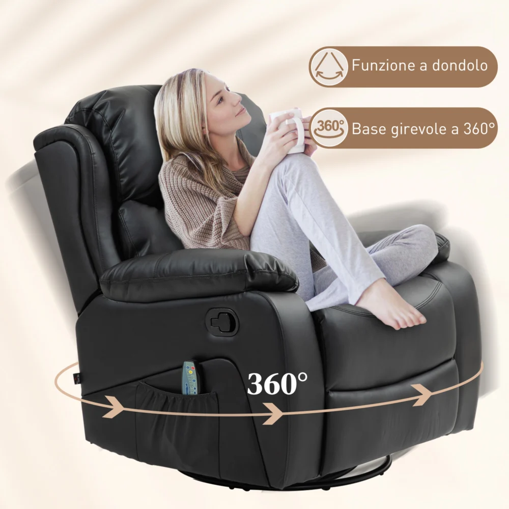 HOMCOM Ανακλινόμενη πολυθρόνα χαλάρωσης με 8 πόντους μασάζ, από συνθετικό δέρμα και ατσάλι, 97x92x104 cm, μαύρο 700-094V90BK