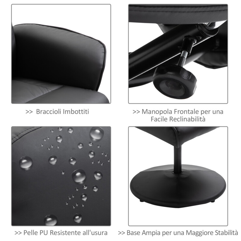 HOMCOM Μασάζ Πολυθρόνα με Υποπόδιο, Ανάκλιση έως 145° με Περιστρεφόμενο Κάθισμα και 10 Σημεία Μασάζ, Μαύρο 700-113V01BK