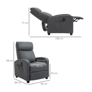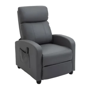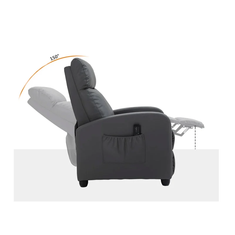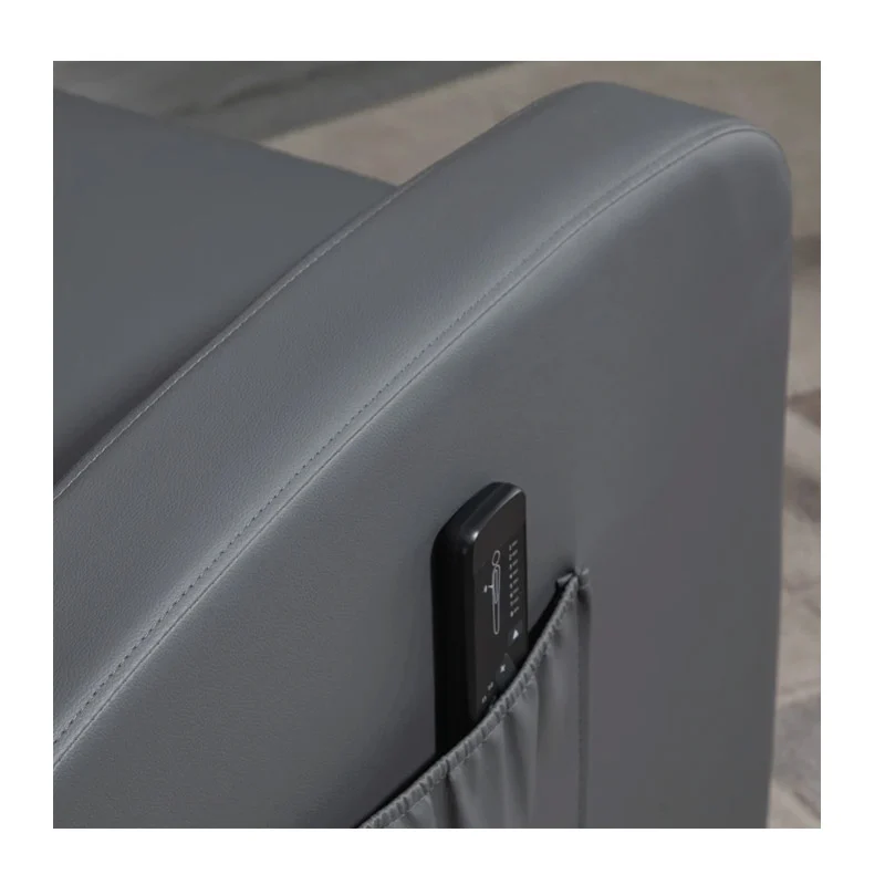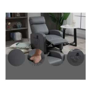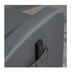 Η πολυθρόνα είναι επενδεδυμένη με δερματίνη PU που δημιουργεί ένα κομψό αποτέλεσμα και καθαρίζεται εύκολα. Το κάθισμα και η πλάτη με παχιά επένδυση σε συνδυασμό με τα υποβραχιόνια εξασφαλίζουν μέγιστη άνεση. Είναι ιδανική για χρήση στο σαλόνι, στο υπνοδωμάτιο για χαλάρωση ή παρακολούθηση τηλεόρασης. Είναι εξοπλισμένη με τηλεχειριστήριο για εύκολη ρύθμιση των λειτουργιών μασάζ. Υπάρχει μια πρακτική πλαϊνή τσέπη στην οποία μπορείτε να αποθηκεύσετε το τηλεχειριστήριο, τα περιοδικά και άλλα μικροαντικείμενα.