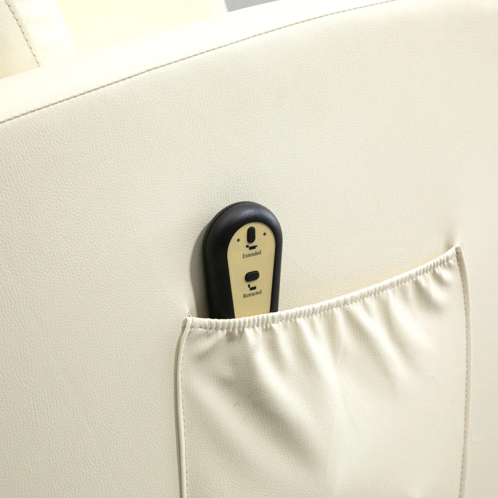 Πολυθρόνα HOMCOM Lift με τηλεχειριστήριο και ανακλινόμενη πλάτη 145°, ψεύτικο δέρμα σε κρεμ χρώμα 713-066V90WT