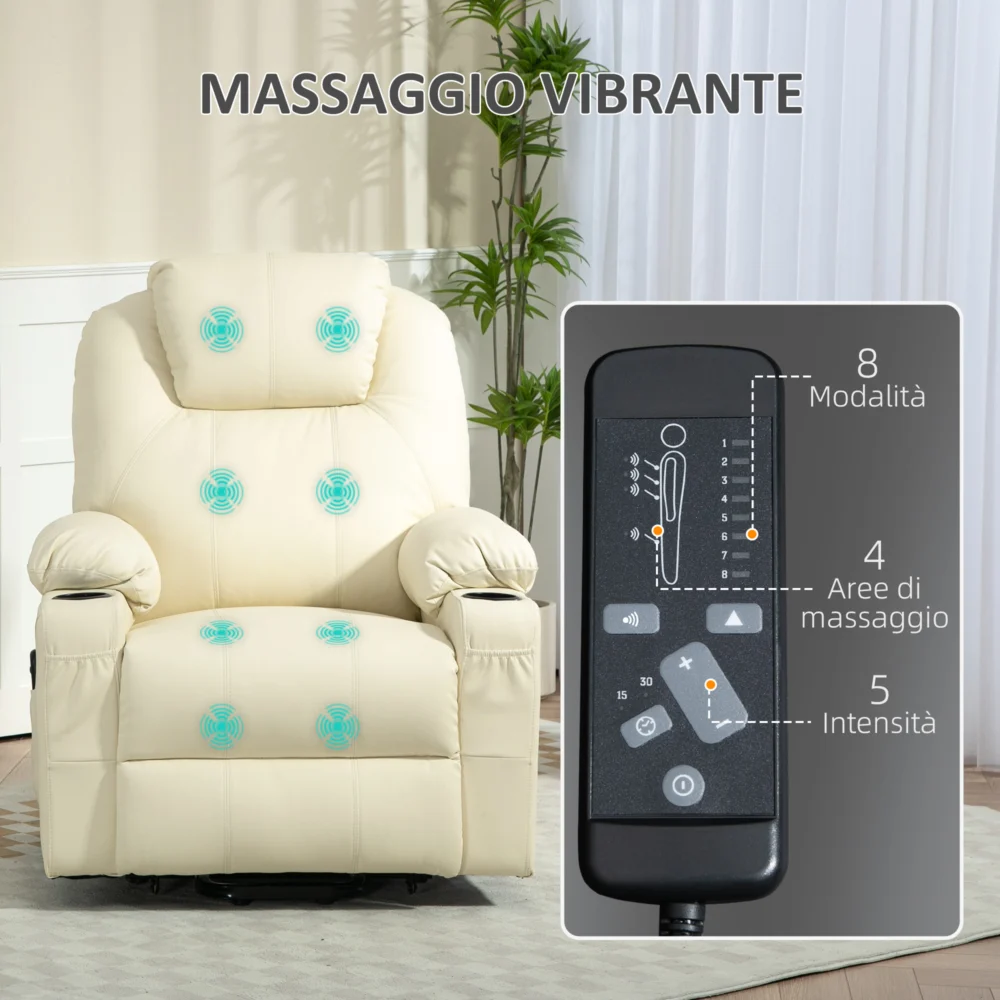 HOMCOM Πολυθρόνα Ανύψωσης Ανακλινόμενη έως 135° με 8 Σημεία Μασάζ Τηλεχειριστήριο και Υποπόδιο 88x92x106 cm Κρέμα 713-096V90CW